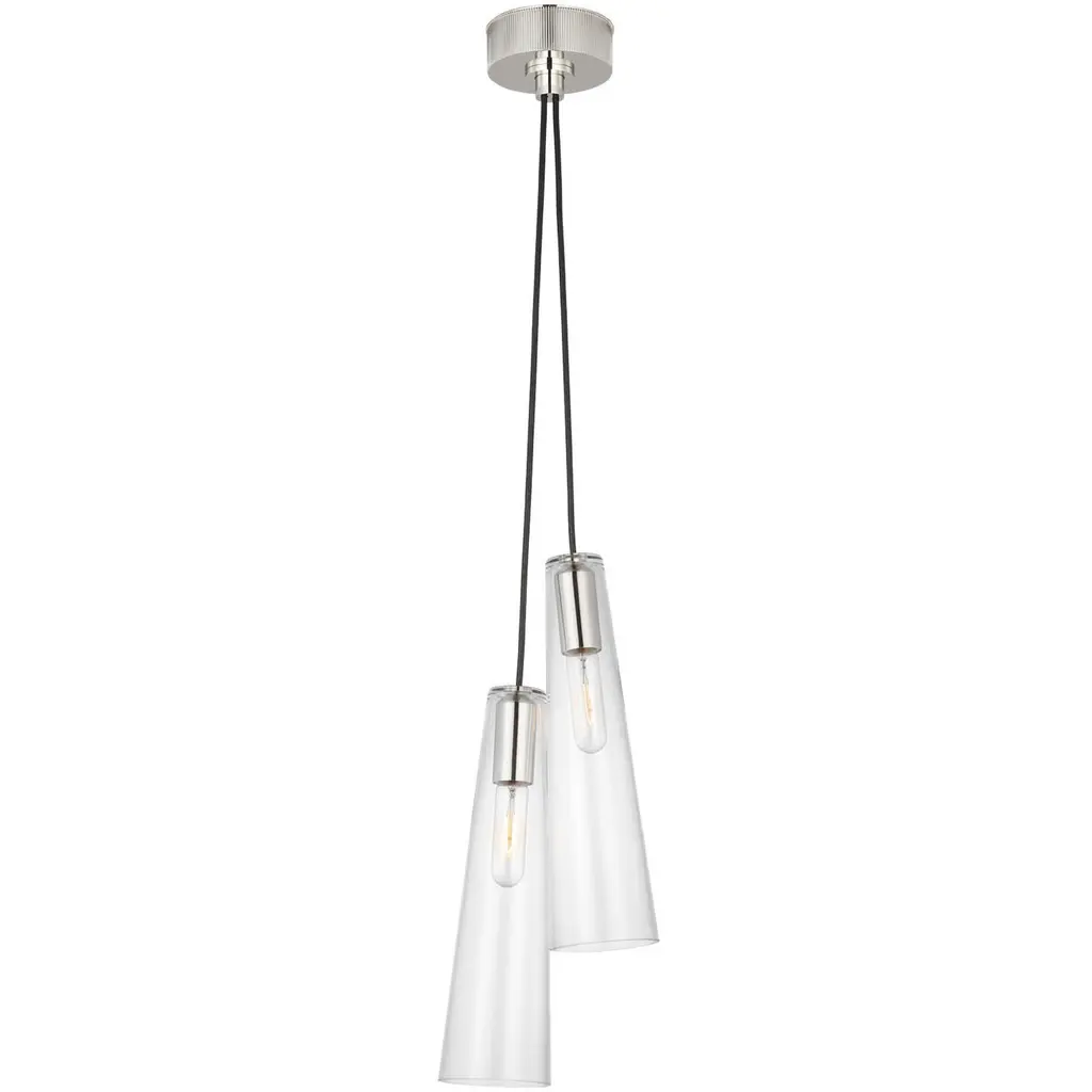 Osvaldo 4" Double Pendant in Polished Nickel with Clear Glass