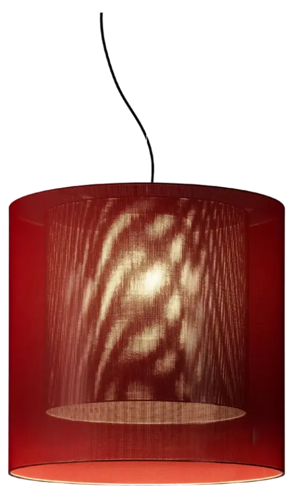 Red moaré x pendant lamp by antoni arola dimensions: d 83 x h 81 cm materials: metal, polyester. Available in other colors and sizes. Moaré’s multiple combinations of formats and colours make it highly versatile. The series takes its name from the moiré effect, an asymmetrical optical illusion of water, produced by its superimposed textures against the light. And its well-proportioned outer geometry guarantees to safeguard its personality regardless of the chosen option. this piece is attributed to the mentioned designer/maker. It has no attribution mark and no official proof of authenticity, however it is well documented in design history. I take full responsibility for any authenticity issues arising from misattribution, up to 250v (europe/uk standard).