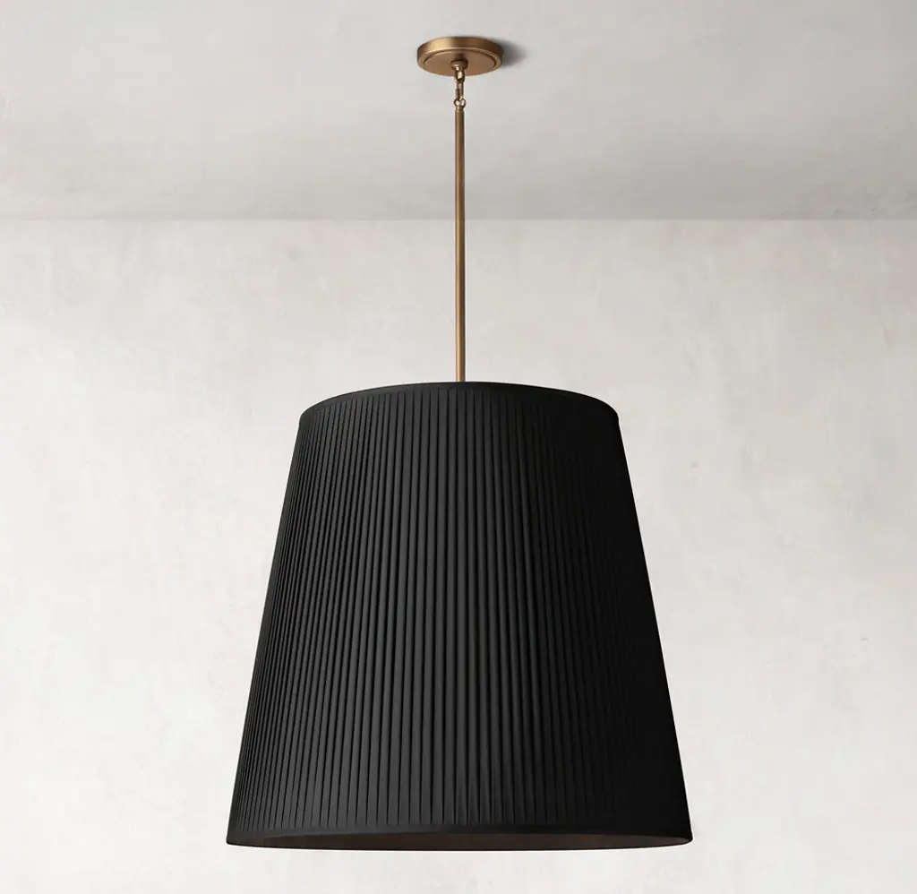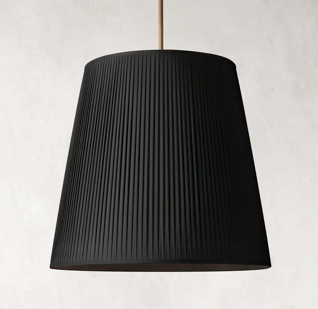 Inspired by an antique English lamp, the Reed Collection combines classical restraint with refined detailing. The pendant's elegant barrel shade is crafted of fine double-layered silk and finished in crisply tailored, couture-style micro-pleats. SHOP THE ENTIRE COLLECTION