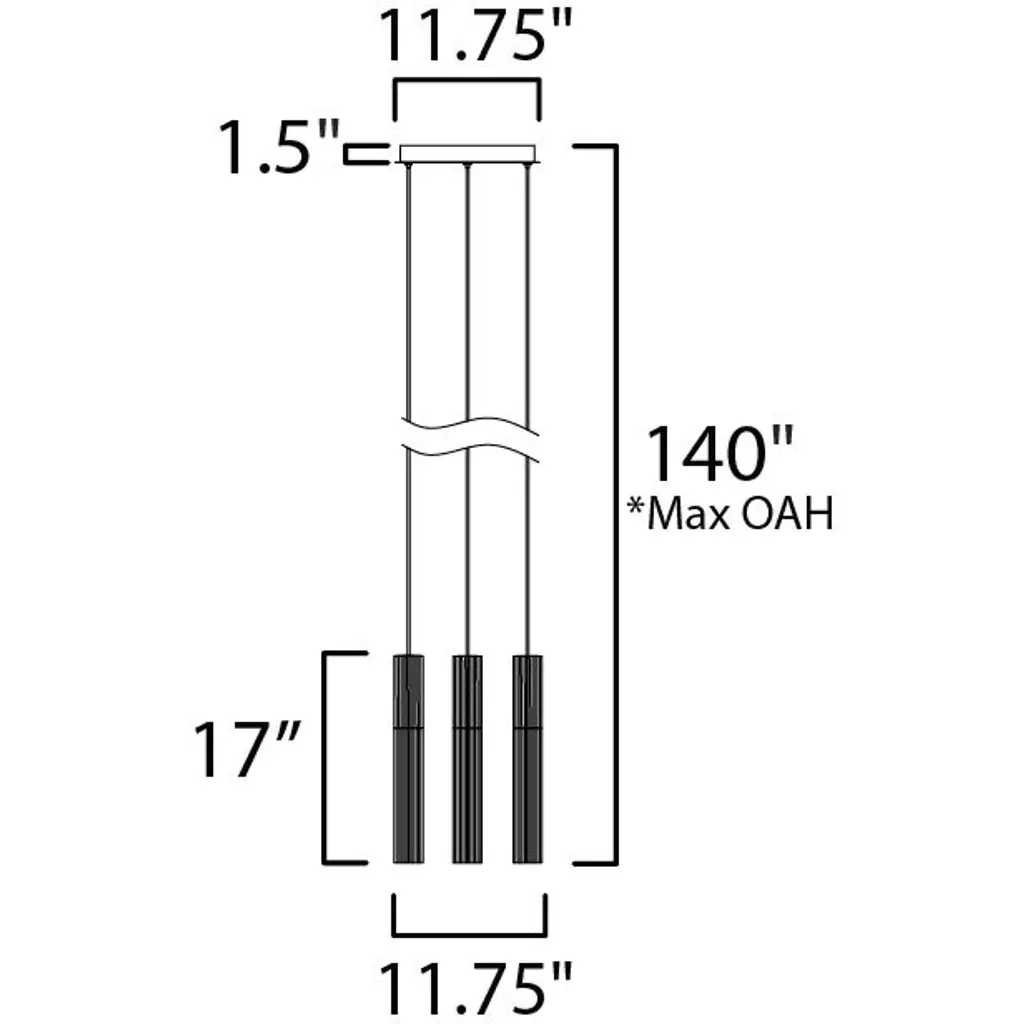 Reeds Led 11.75 Inch Black Multi-Light Pendant Ceiling Light
