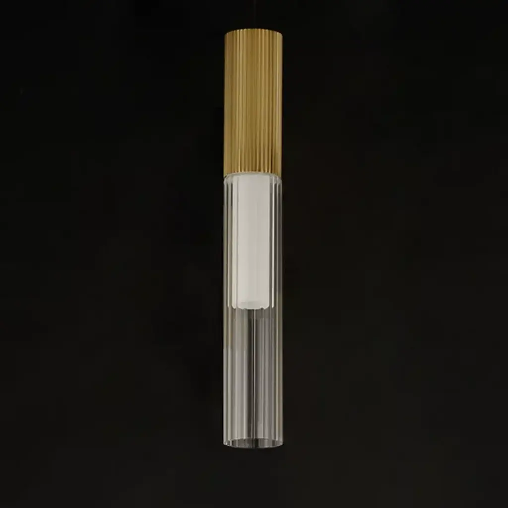 The Reeds LED Mini Pendant from ET2 Lighting has reeded glass tubes that are paired with ribbed aluminum LED housings in a Gold finish. The interior frosted glass diffusers soften the high-powered LED boards concealed within. The low-voltage light sources are driven by a commercially rated range voltage LED drivers with universal dimming, allowing them to be used in both residential and decorative commercial or hospitality applications.
