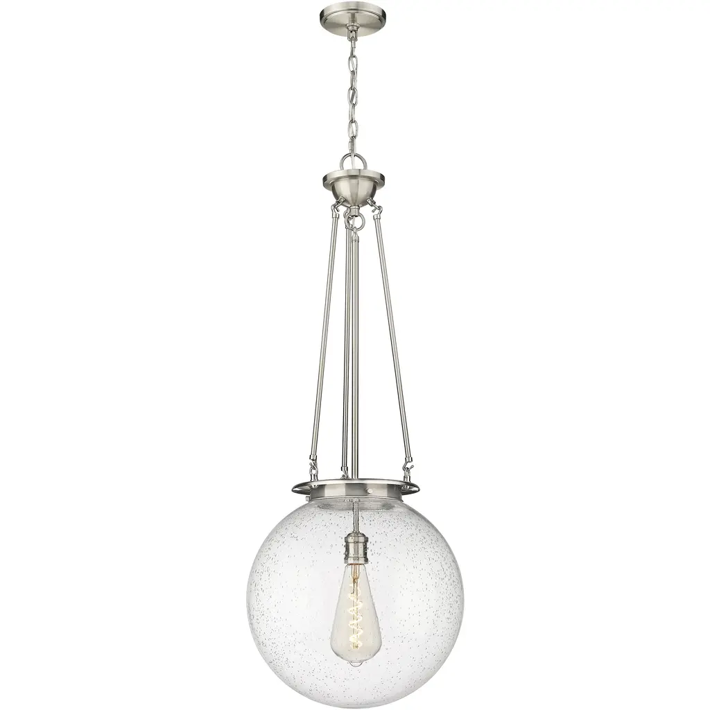 Presented by Visual Comfort Signature, the Reese Globe Pendant is designed by Marie Flanigan and made in the USA. It features an orb of clear restoration glass with a banded metallic accent gracefully surrounding the central perimeter. Suspended from artfully arranged chain link strands, the pendant provides a diffusion of light from within its central portion. With candelabra lamping, Reese emits a warm and inviting illumination that brings animation to the surrounding decor space.