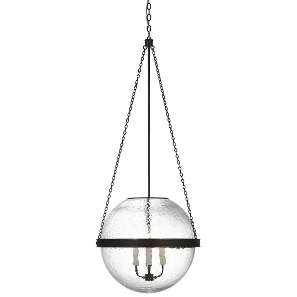 Presented by Visual Comfort Signature, the Reese Globe Pendant is designed by Marie Flanigan and made in the USA. It features an orb of clear restoration glass with a banded metallic accent gracefully surrounding the central perimeter. Suspended from artfully arranged chain link strands, the pendant provides a diffusion of light from within its central portion. With candelabra lamping, Reese emits a warm and inviting illumination that brings animation to the surrounding decor space.