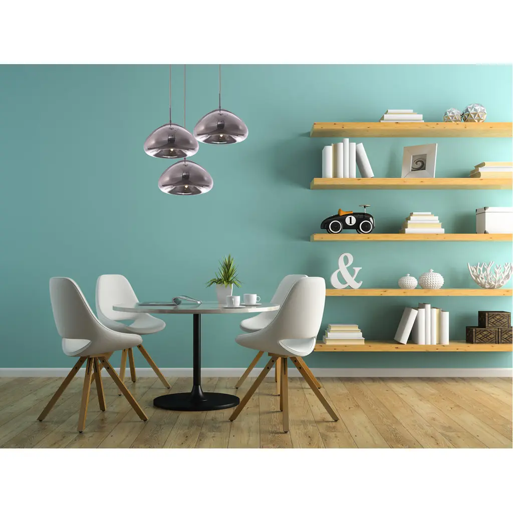 Stunning beauty at its most minimal, Reflection collection hanging fixtures lend a futuristic splendor to a kitchen, living room, or bedroom. Spherical, hemispherical, or lantern-shaped glass shades seem to float in midair from their slender steel cords. Polished and glossy as a mirror itself, this design comes in opaque or striped chrome, copper, or gold finishes.