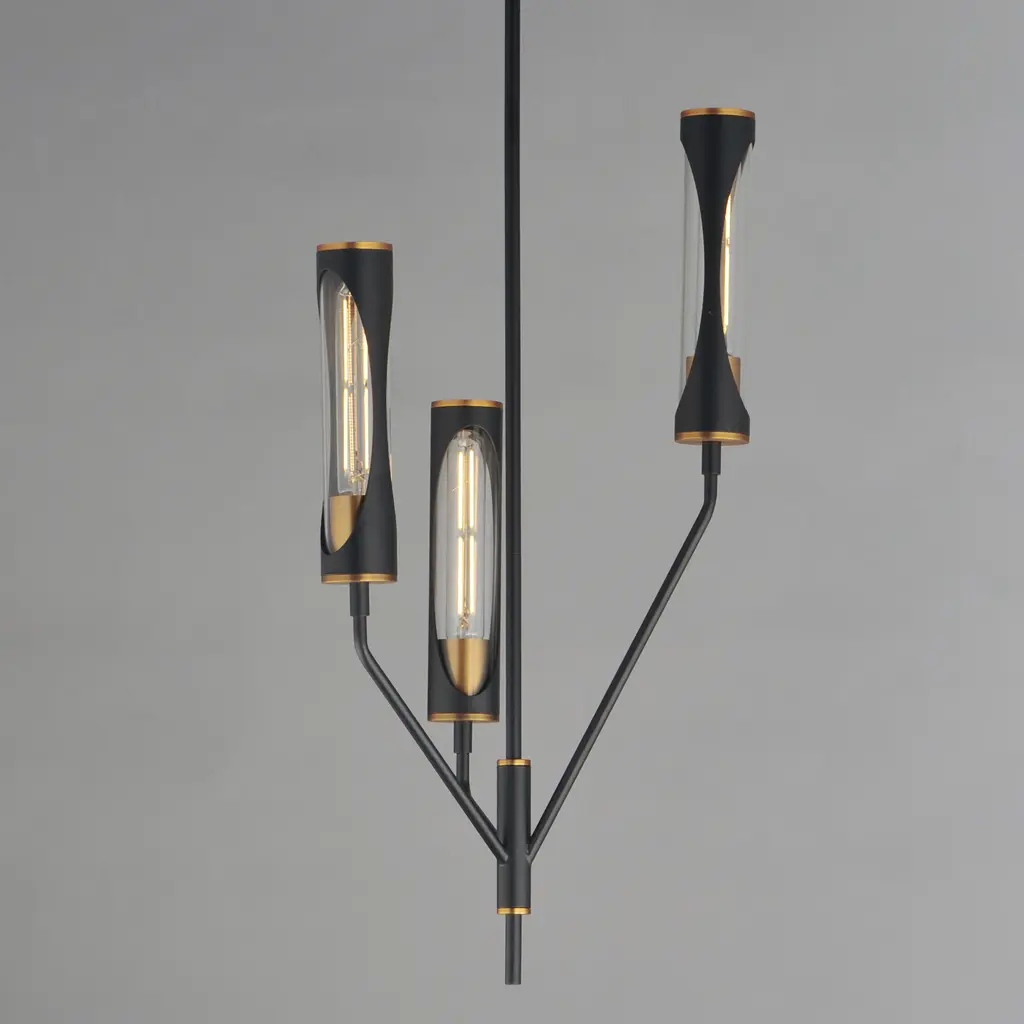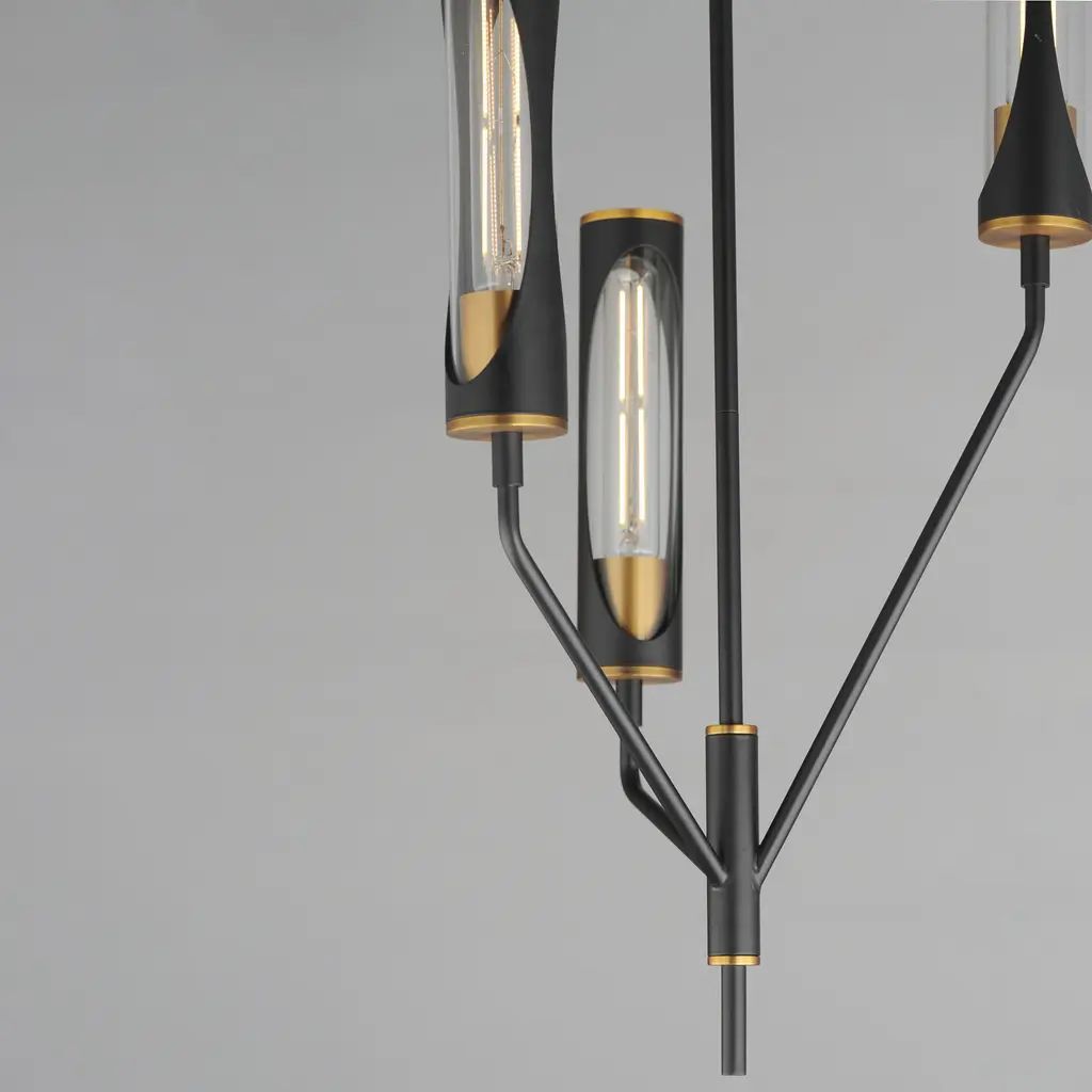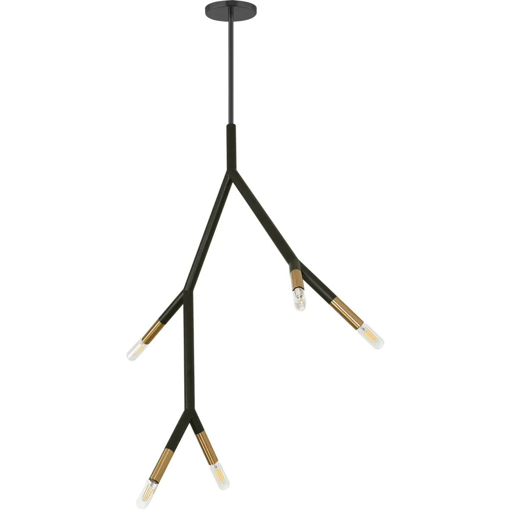 Glamourous and modern, this two-toned lighting collection plays with form and scale. A layered composition of materials, tubular lamps are protected within glass tubes sheathed in metal shades with oval cut-outs that reveal the light source. Chandelier Arms extend in elongated, uneven heights while the sconces are over-scaled for dramatic applications. Available in contrasting finish combinations of Light French Grey with Natural Aged Brass or Matte Black with Antique Brass, the vibrant color palette plays with contrast and exudes luxury.