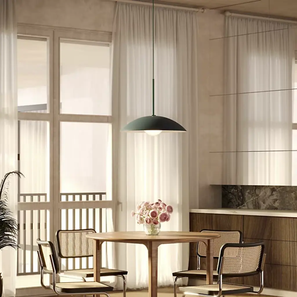 The Regent Pendant from Kuzco Lighting incorporates a wide dome shade with an opal glass diffuser to direct light precisely where needed. Designer Ryan Pauly created this wire-suspended fixture to cast focused downward illumination that highlights surfaces without overwhelming the room. The steel shade and glass diffuser pairing ensures durability while maintaining lightness. This pendant adapts effortlessly to sloped ceilings in dining areas and kitchen islands. Its timeless dome profile gives spaces a sense of established design history without feeling dated.