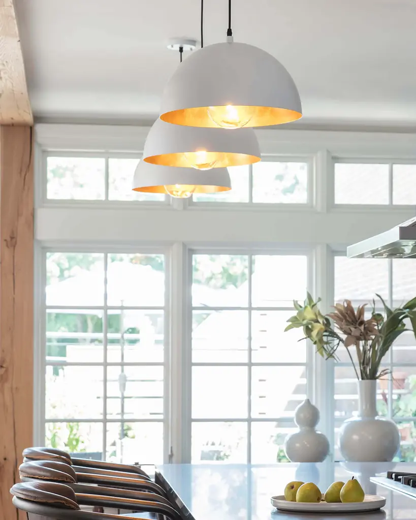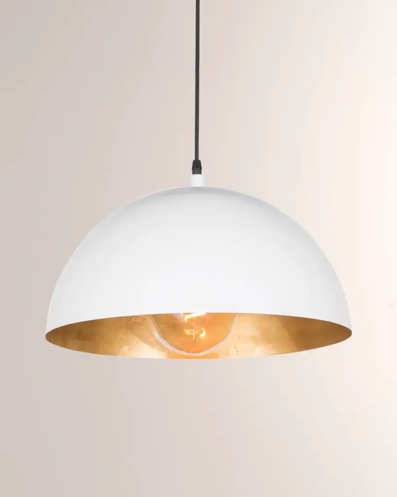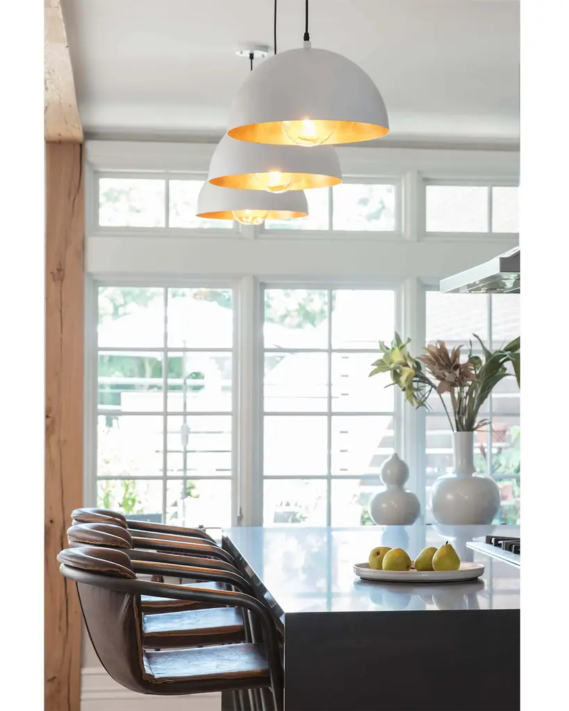 Iron dome lighting pendant. Approx. 15"Dia. x 8-129"T. Imported. Boxed weight, approximately 18 lbs. About Regina Andrew: Regina Andrew Detroit was founded in 1998 by real-life couple Carla Regina and James Andrew (AKA Jimi) with one goal in mind: that everything they do should electrify the room. Based in the “Paris of the Midwest,” the home decor and lighting brand has hit that goal and then some, as they’ve expertly blended form with function and added a hearty dose of rock ‘n’ roll along the way. Sparking self-expression and creativity through unforgettable design, their products are globally inspired and designed with natural materials as the star. Alabaster, crystal, and marble offer a timeless aesthetic, while brass and mirrored finishes bring RAD’s signature glamour to the forefront.