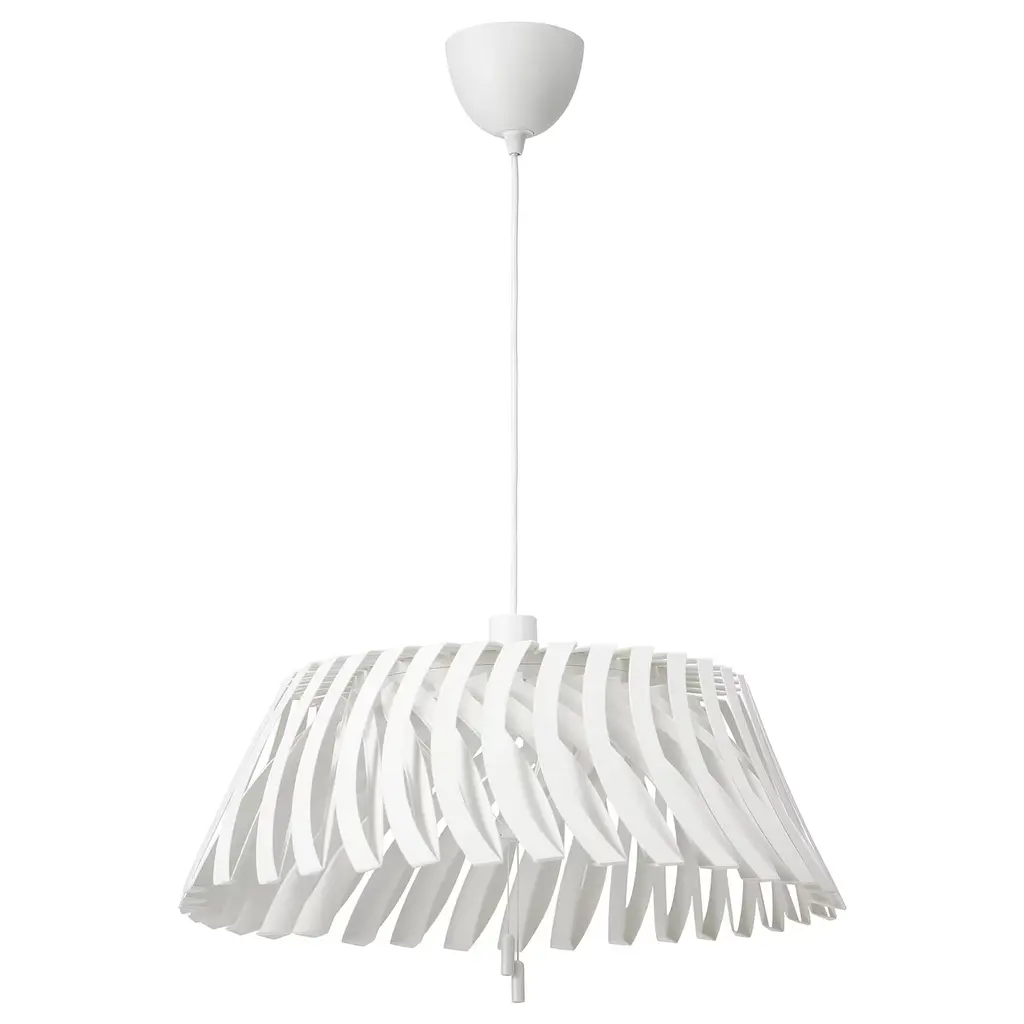 REGNSKUR / SUNNEBY Pendant lamp - white 20 ". Easy to take home since the lampshade comes in a flat-pack. The cord set has a disc that allows you to easily adjust the cord length so that the lamp hangs at the height you want. The lamp shade is easy to remove and machine wash.