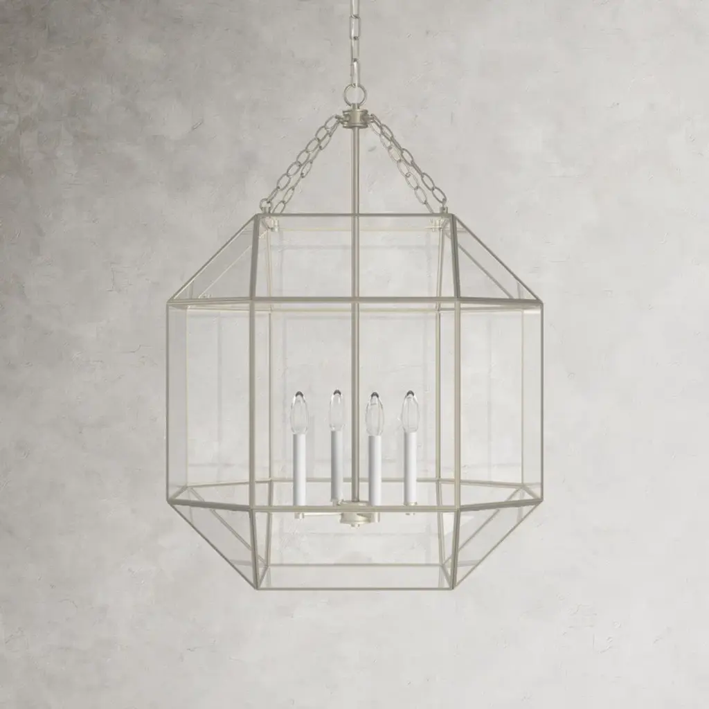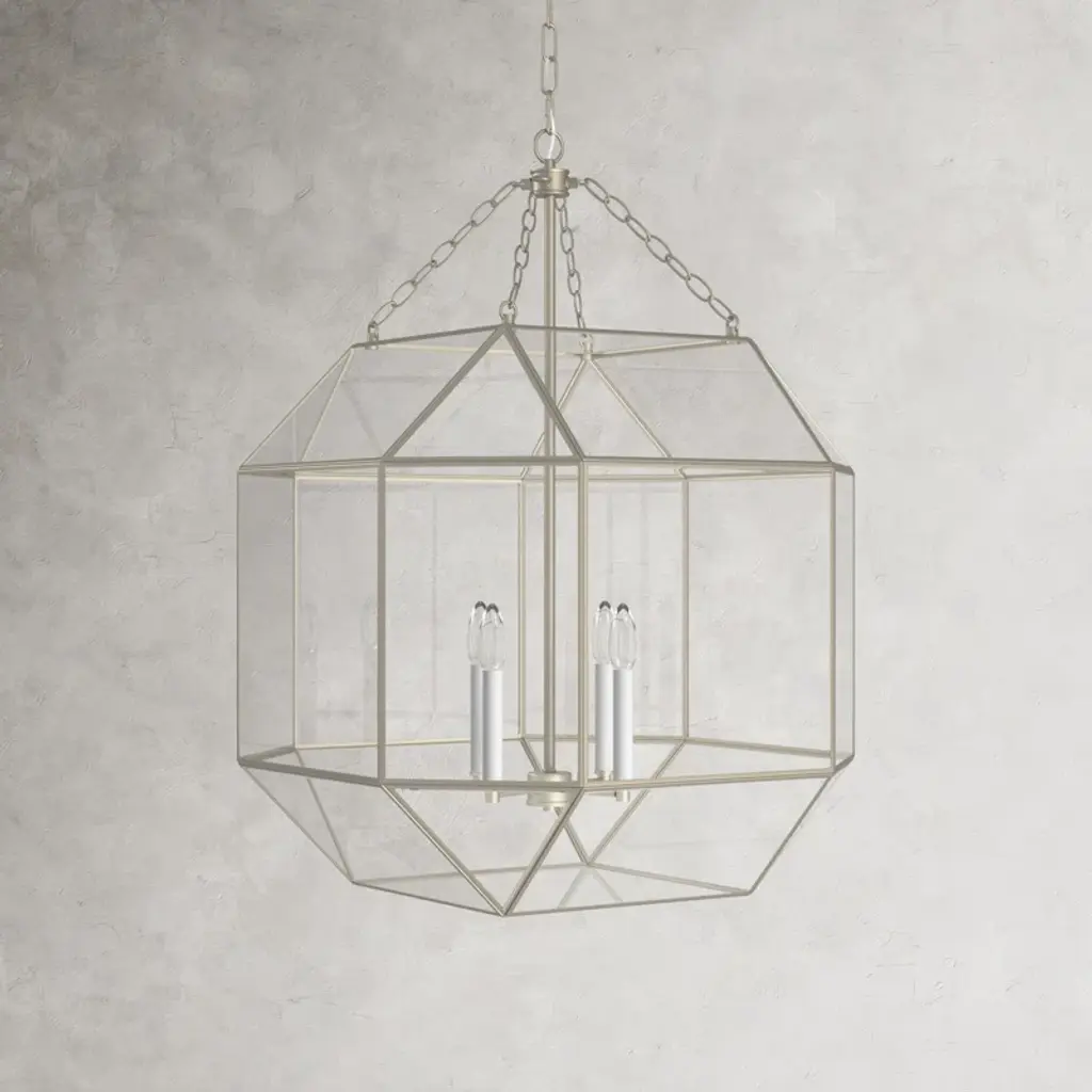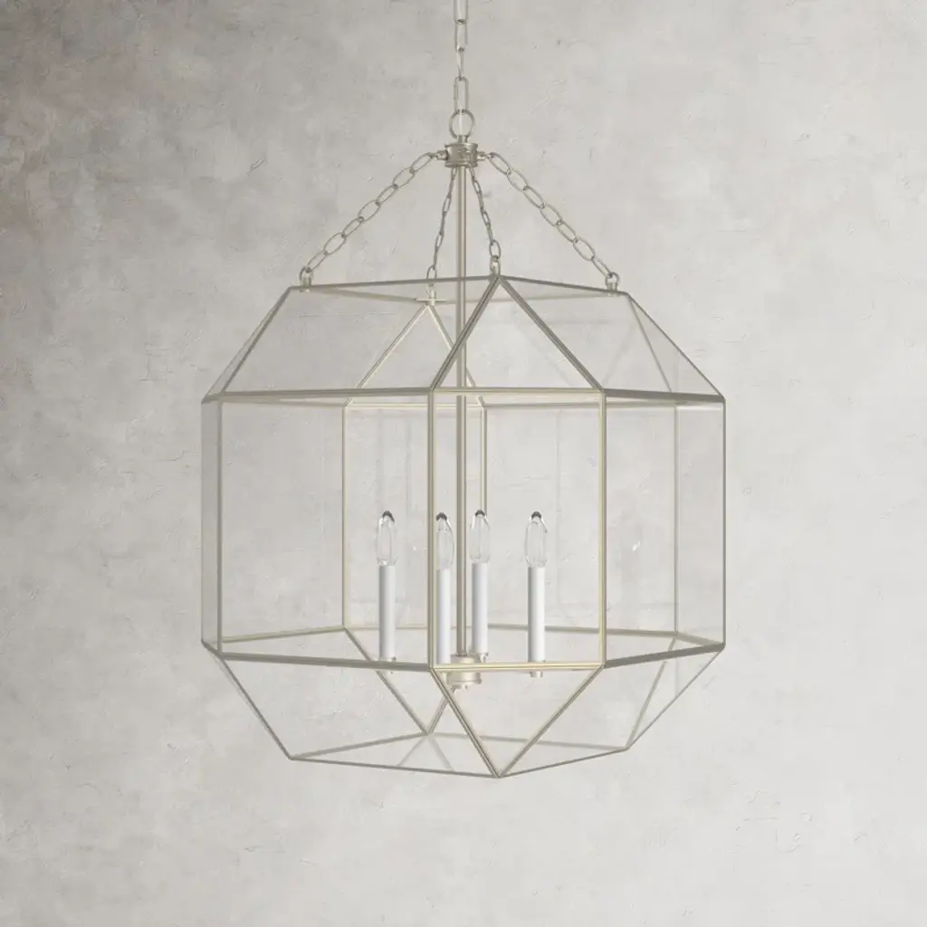 Welcome in an eye-catching accent piece with our 4-light pendant. Crafted from steel and transparent glass, this geometric fixture works with decor styles from modern farmhouse to contemporary. It's compatible with sloped ceilings and hangs from an adjustable downrod to suit your space. We love how this fixture looks styled solo above a dining table or in pairs over the kitchen island. Plus, this light works with a dimmer switch for an effortless transition from day to night.