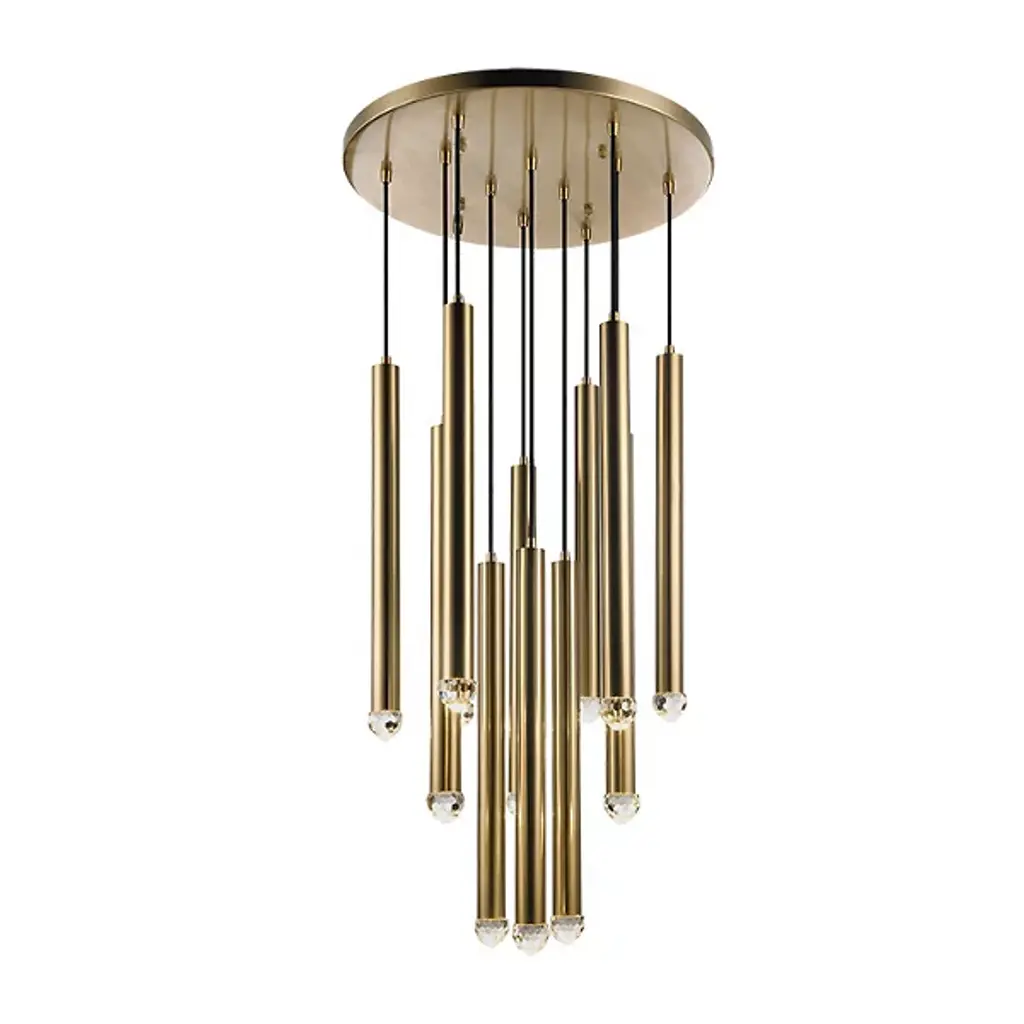 A collection of elegant windchimes. The Reign LED Multi-Light Pendant from Matteo Lighting unites simple form with maximum function with an elegant and shining display perfect for homes looking for minimalist style. Each smooth cylindrical body hangs at various heights from a matching wire and ends with a crisp glass shade finial. An integrated, energy-efficient LED rests within each piece, bringing a bright and even layer of illumination to the room.
