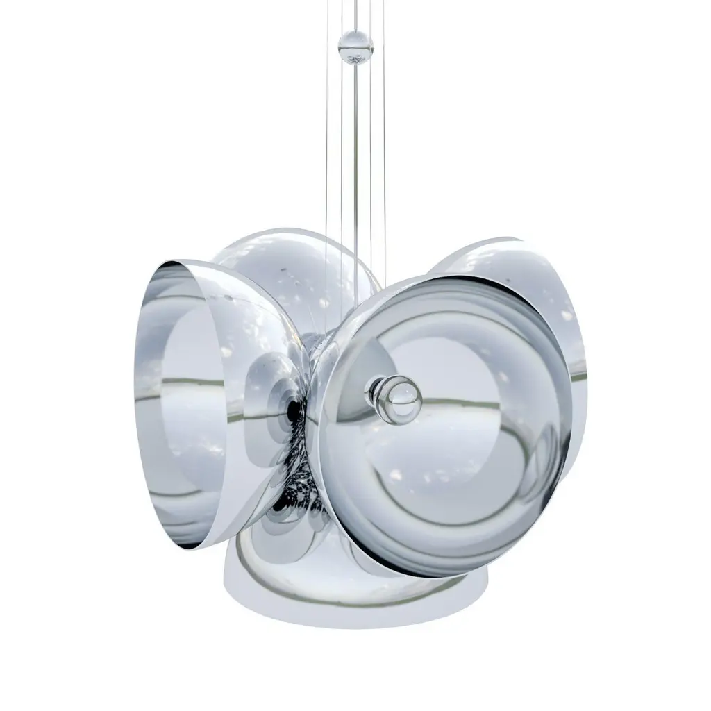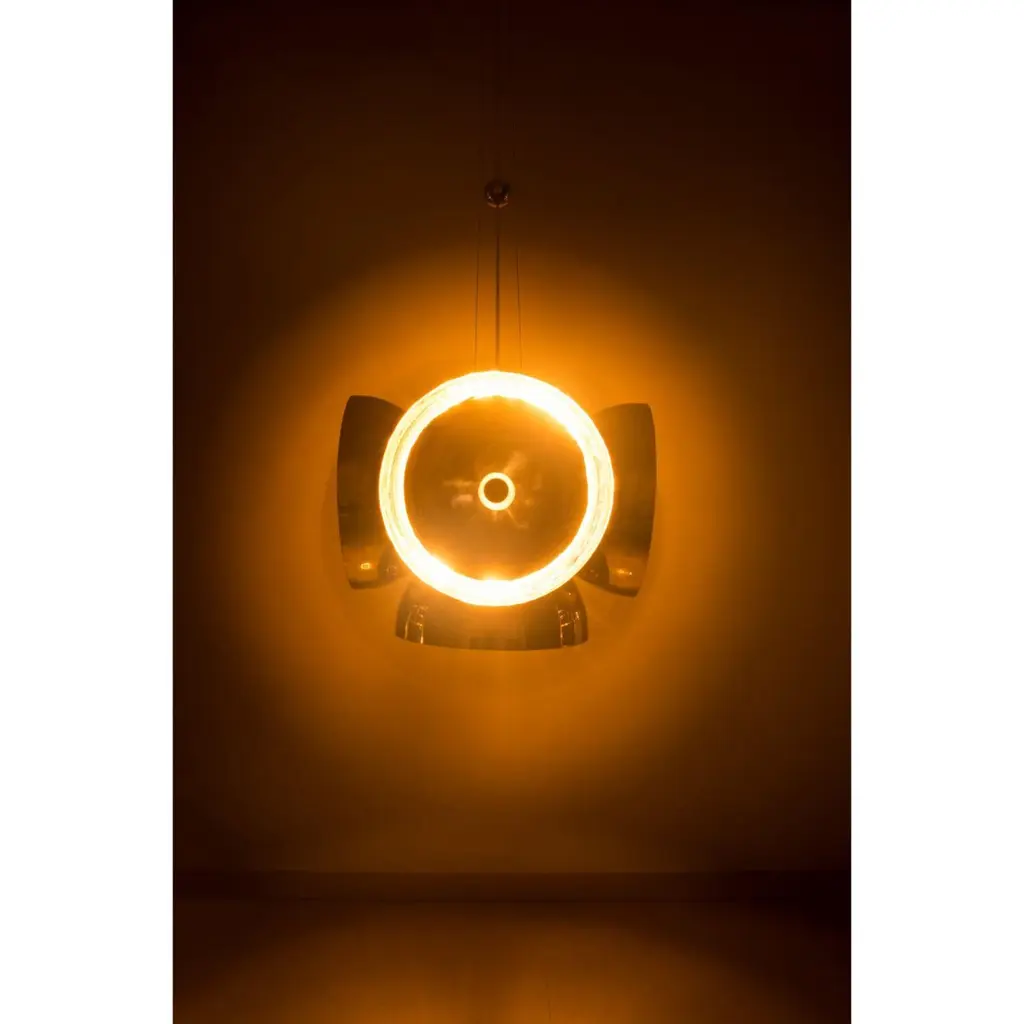 Relic Aureole 1 pendant by The ShawDimensions: D50 x W 43 x H 350 cmMaterials: Stainless SteelWeight: 18 kgAll our lamps can be wired according to each country. If sold to the USA it will be wired for the USA for instance.R E L I C A U R E O L E I got up and looked at the endless black ocean, and surprised to see a huge black shadow floating on the horizon. I stood up in a panic, but I found that the edge of the huge black shadow started to light up. THESHAW is the private studio brand created by Shaw Liu in 2017. It aims to shape new styles in aesthetic and conception with modern perspectives using ordinary materials and finest craftsmanship, to describe the spirit and artistry of the products in the frame of freedom and minimalism, and to create exquisite and contemporary visual installation products, while embodying her understanding of the divine thinking and spiritual world.Shaw Liu created the private art studio and the brand “THESHAW” in 2017.The artist has been creating new mannerism works combining modern aesthetic perspectives with various thinkings. The brand is a fusion of future, spatial and three-dimensional elements, and spares no effort to express the feeling of divinity, spirituality, and religion.