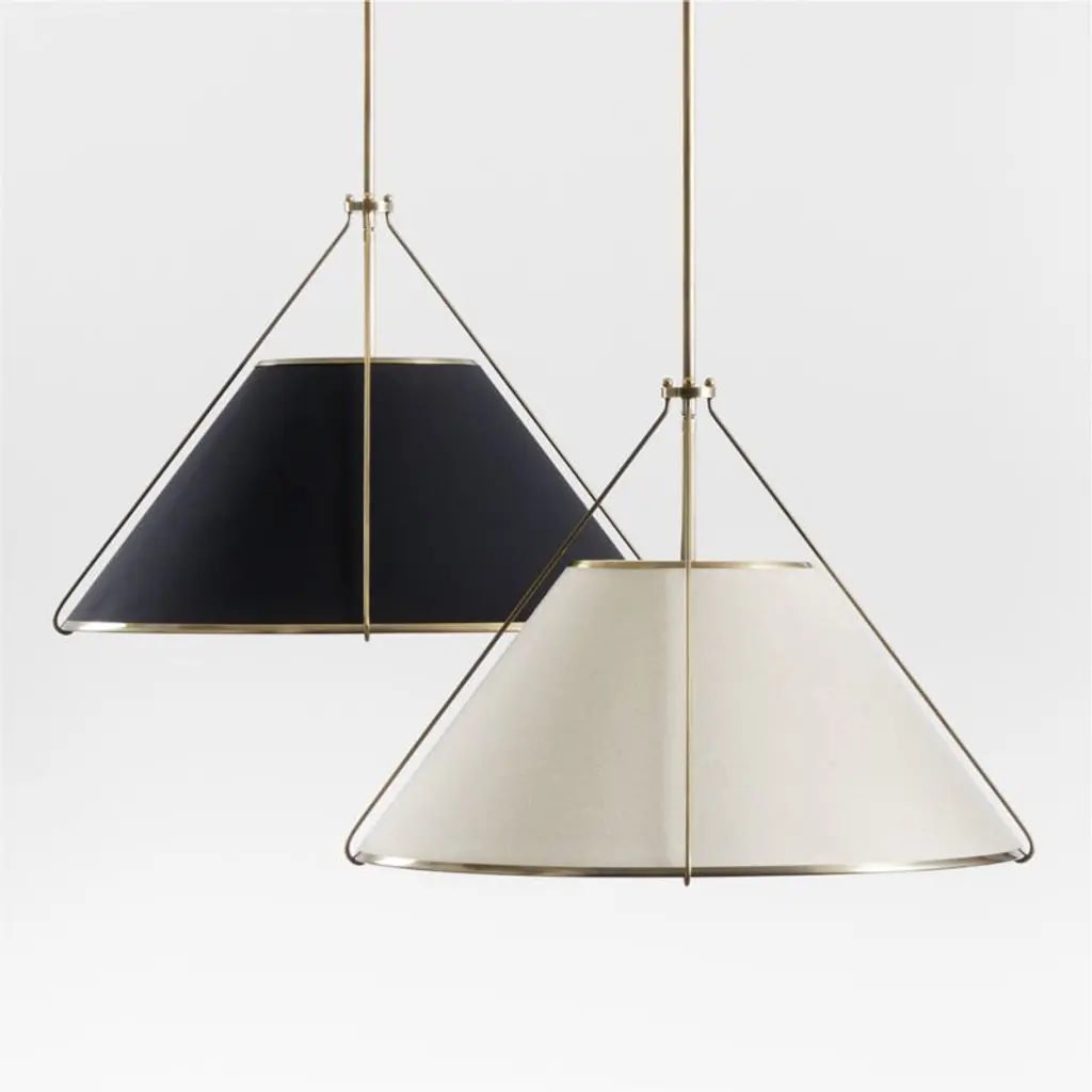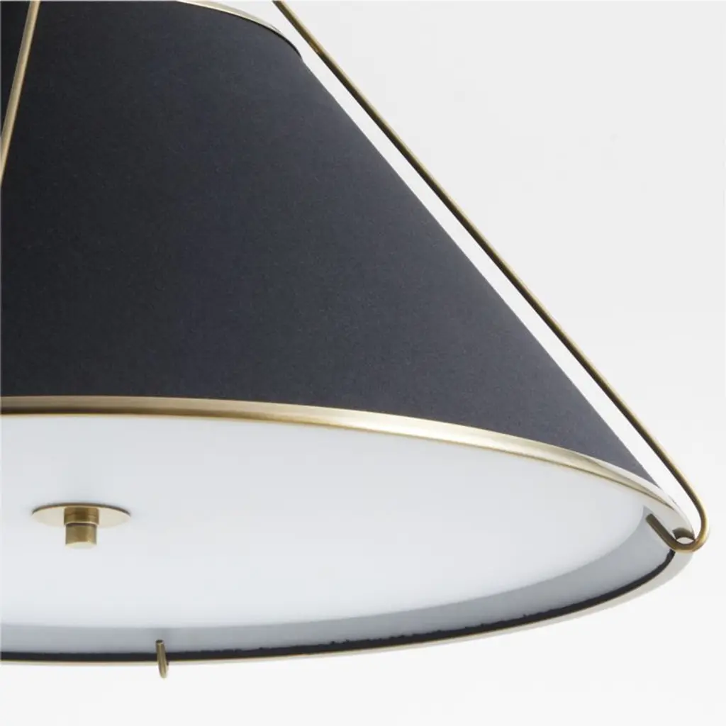 An updated take on the pendant light, Remi houses a classic taper shade within a conical cage of burnished brass for a look that's airy and contemporary. The black linen shade sets off the gleaming metal, while the white diffuser offers bright contrast and filters light softly. Our exclusive Remi pendant light provides pleasant illumination overhead-no exposed bulb-whether hung individually above a breakfast table or in multiples down the length of a kitchen island or dining table.