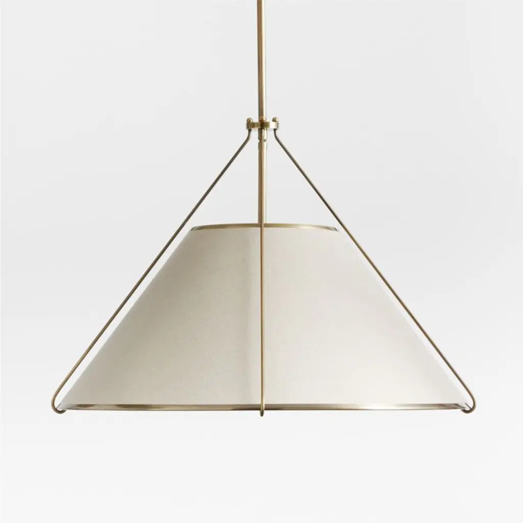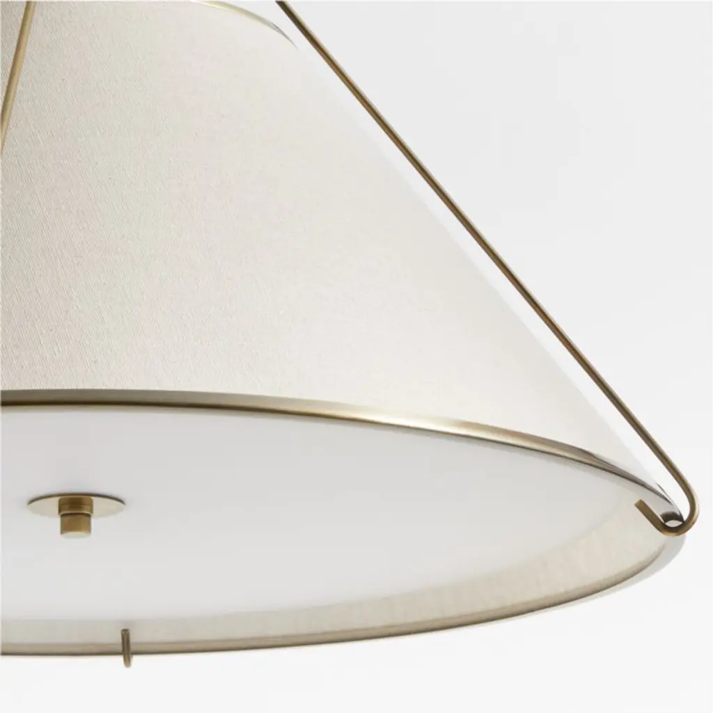 An updated take on the pendant light, Remi houses a classic taper shade within a conical cage of burnished brass for a look that's airy and contemporary. The natural linen shade harmonizes with the gleaming metal, and the white diffuser adds a second serene neutral while filtering light softly. Our exclusive Remi pendant light provides pleasant illumination overhead-no exposed bulb-whether hung individually above a breakfast table or in multiples down the length of a kitchen island or dining table.