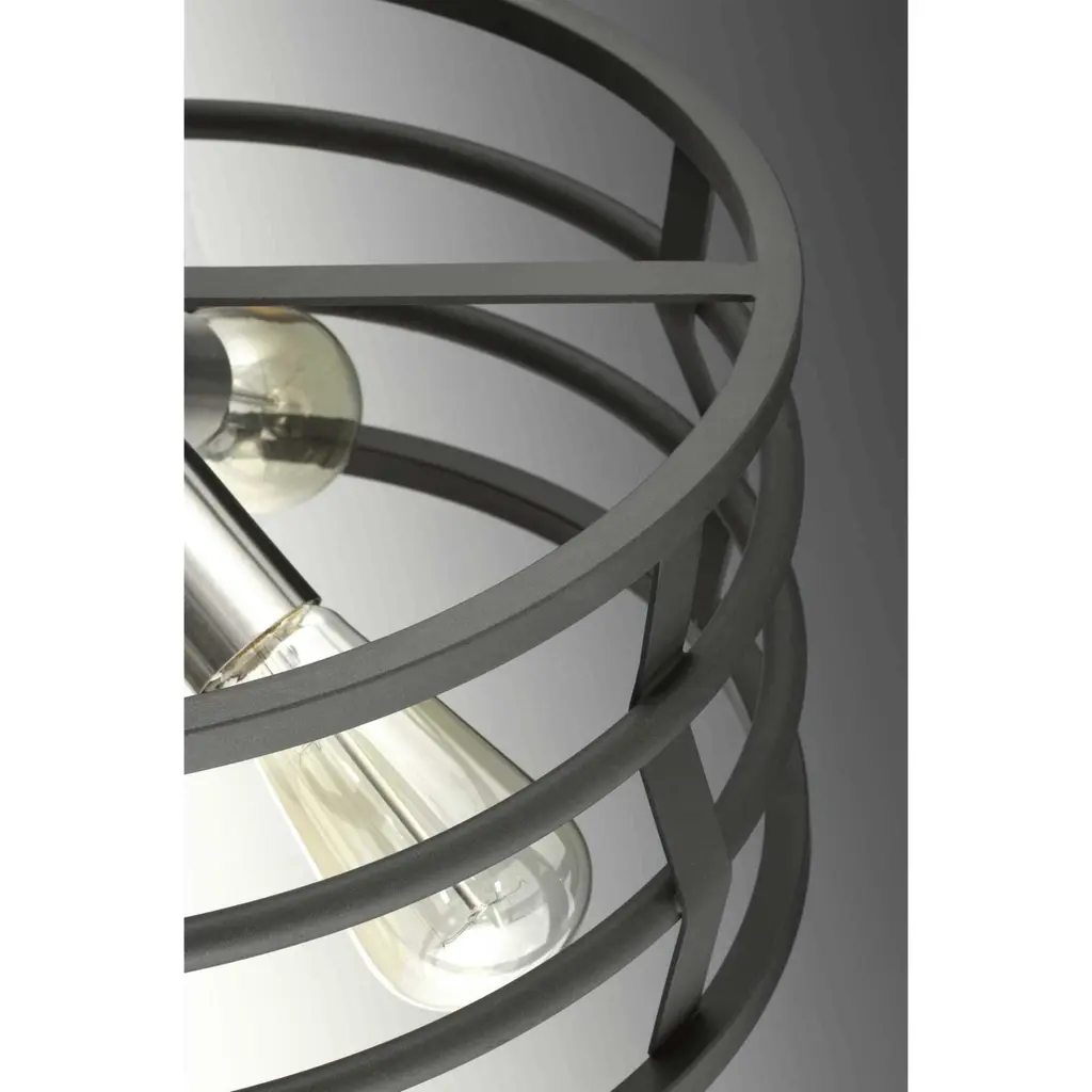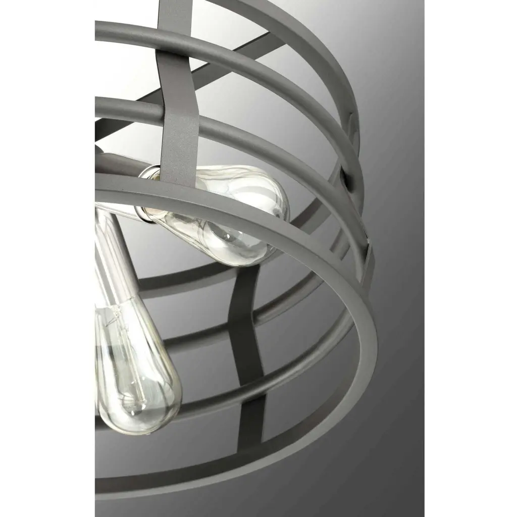 Remix features industrial-inspired pendant options. A Graphite frame is comprised of straps that weave together to create an open cage design. Brushed Nickel accents on the inside add a touch of mixed metal accents. This three-light pendant is part of.