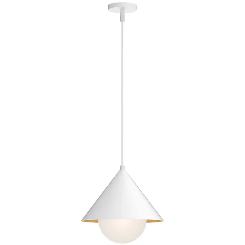 Inspired by Japanese design, the Remy Pendant by Alora Mood adds flair to simplistic design. This light fixture is secured by a canopy at your ceiling. With a conical framework of metal housing an opal glass globe, your pendant is given a transitional style. A luminous LED emanates bright light throughout your living space with ease.