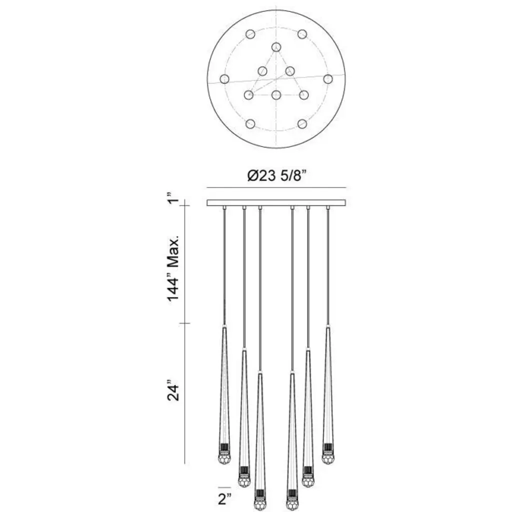 A modern cascading LED pendant offered in a Matte Black Finish and a Chrome finish. This collection has a contemporary feel with added interest in the detailed glass shade. Both finishes have a black fabric cord to complete the style.
