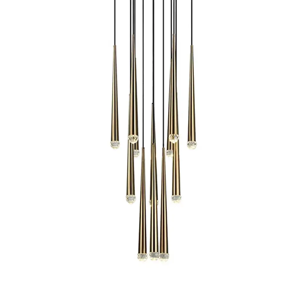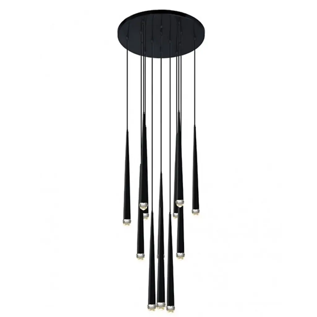 Elevate your favorite space with the Renaie LED Multi-Light Pendant from Matteo Lighting. A breath-taking silhouette, this piece is composed of a series of draping, clean metal shades that gradually widen and end with a detailed glass finial. Hanging from thin wires from a flat, disc ceiling plate, each piece contains an integrated, energy-efficient LED that emits a warm and thoughtful glow. The entire fixture comes to life, washed in the soothing light before it spreads softly outward, adorning the room with an elegant statement.