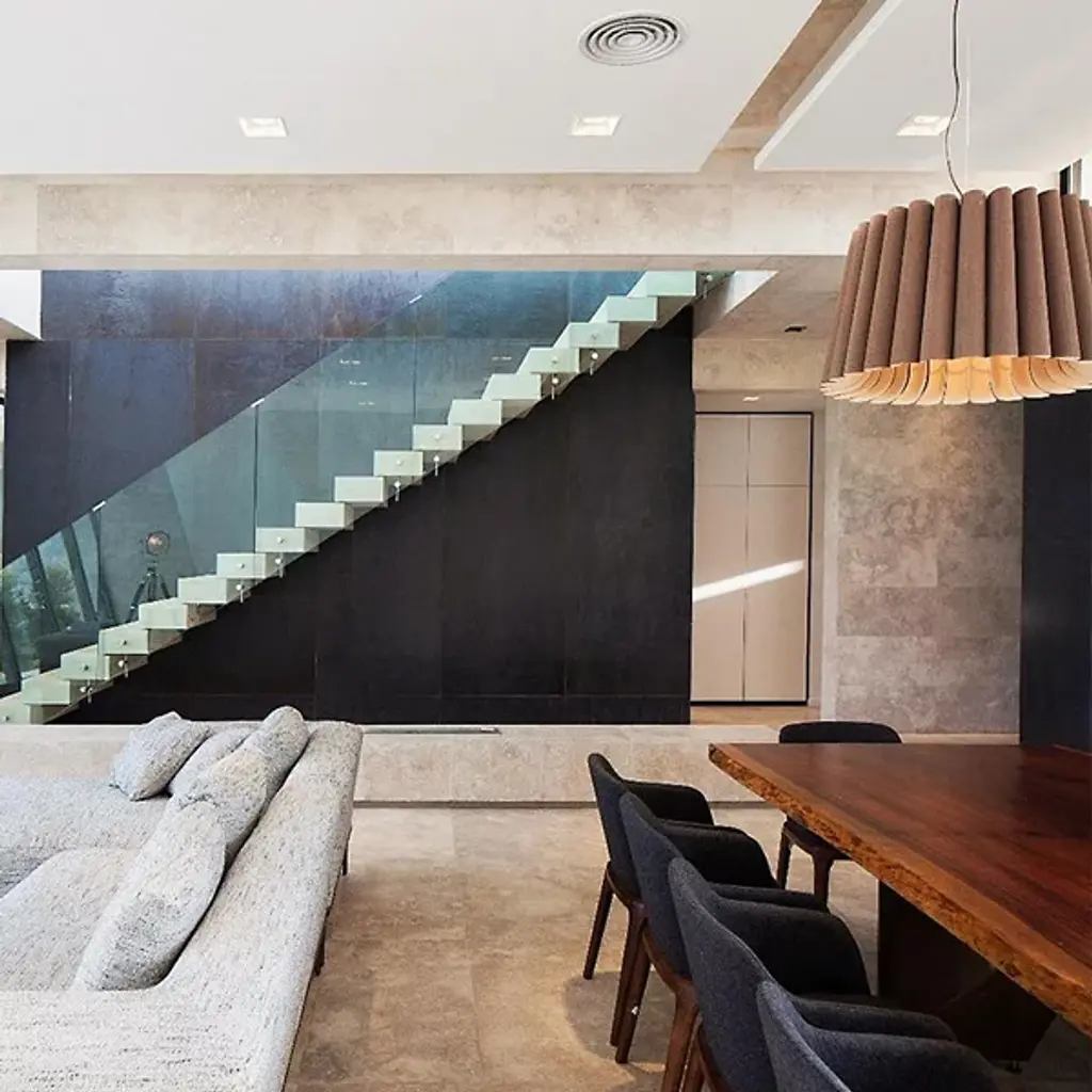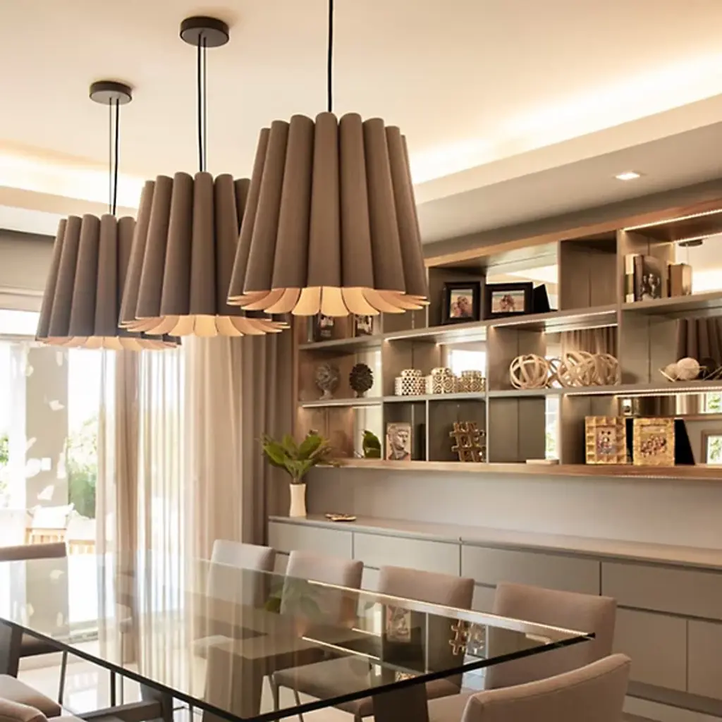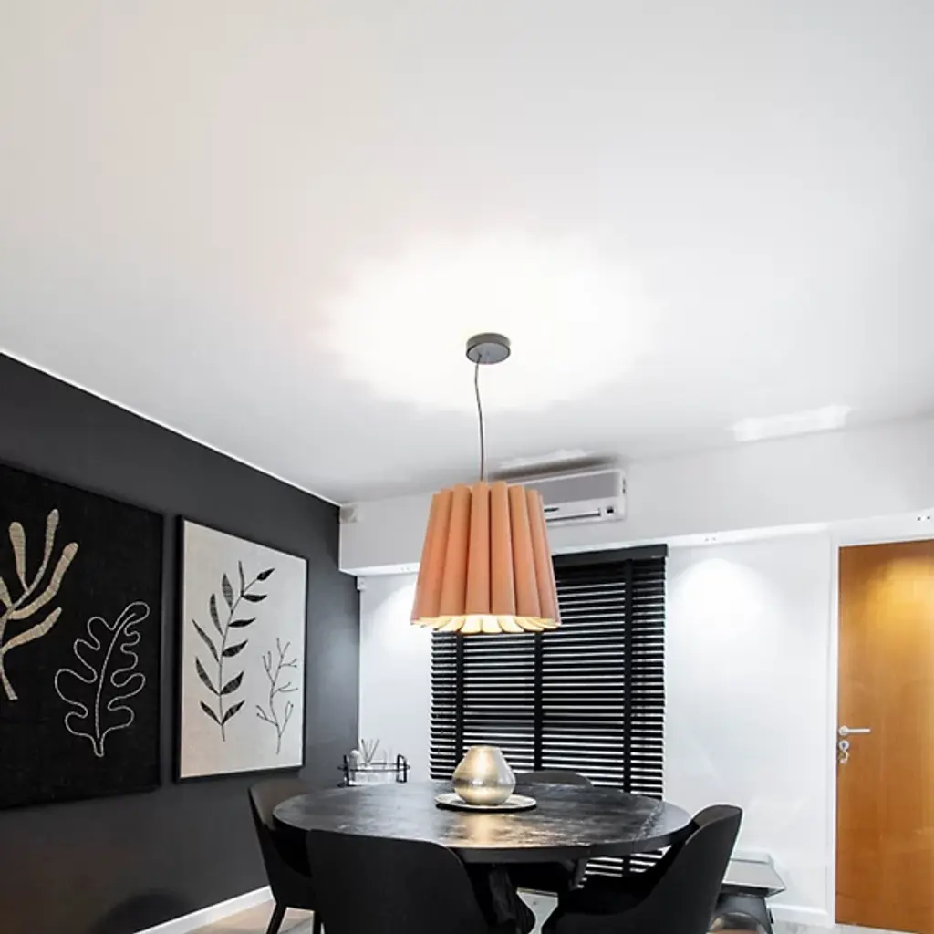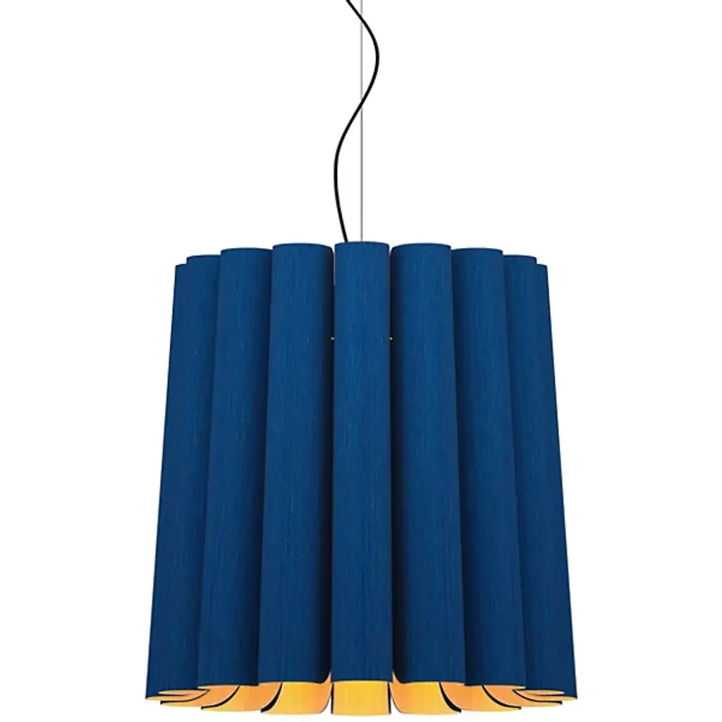 A natural choice for dressing up a modern interior, the Renata Long Drum Pendant by Bruck Lighting is so soft yet crisp-looking, it may appear to be made of precisely tailored fabric. In reality, it is crafted from numerous bent panels of Reconstructed Wood Veneer, with the natural grain revealed through the translucent finish. Part of the Wood Ecological Project (WEP), this pendant is a naturally sophisticated result of inspiration drawn from diverse natural landscapes. Use it to add a soft, elegant touch over a modern dining table.