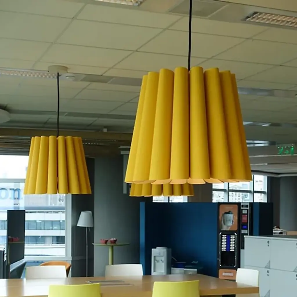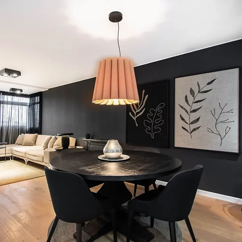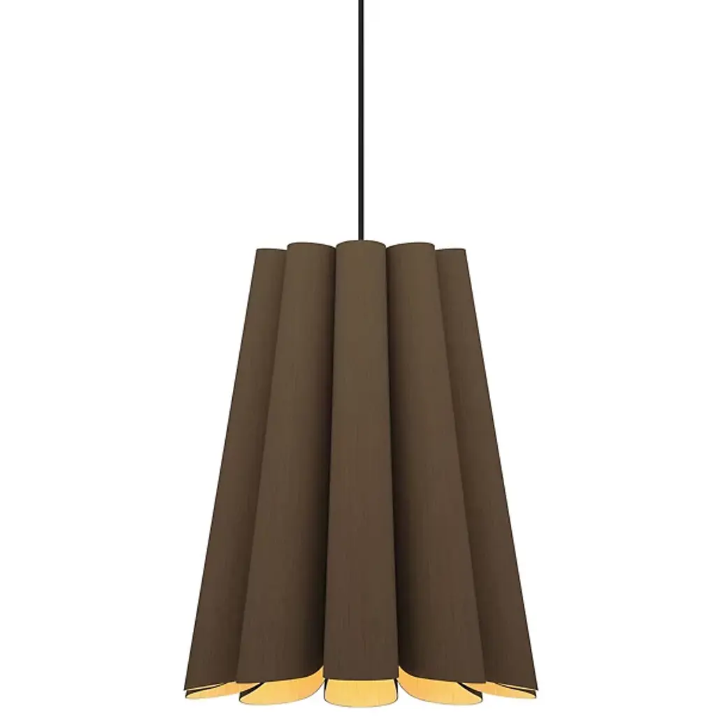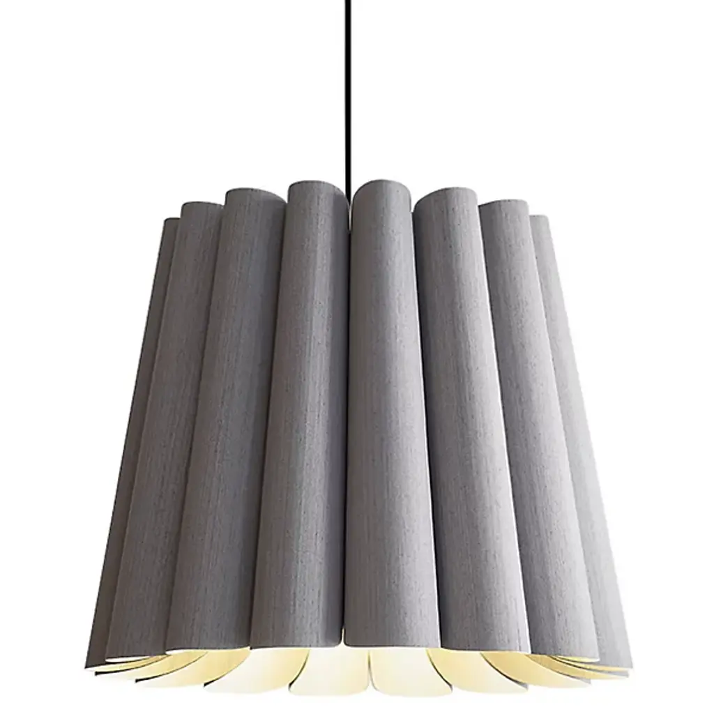A natural choice for dressing up a modern interior, the Renata Long Drum Pendant by Bruck Lighting is so soft yet crisp-looking, it may appear to be made of precisely tailored fabric. In reality, it is crafted from numerous bent panels of Reconstructed Wood Veneer, with the natural grain revealed through the translucent finish. Part of the Wood Ecological Project (WEP), this pendant is a naturally sophisticated result of inspiration drawn from diverse natural landscapes. Use it to add a soft, elegant touch over a modern dining table.