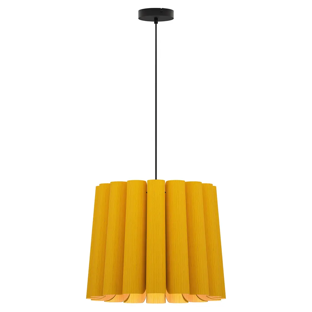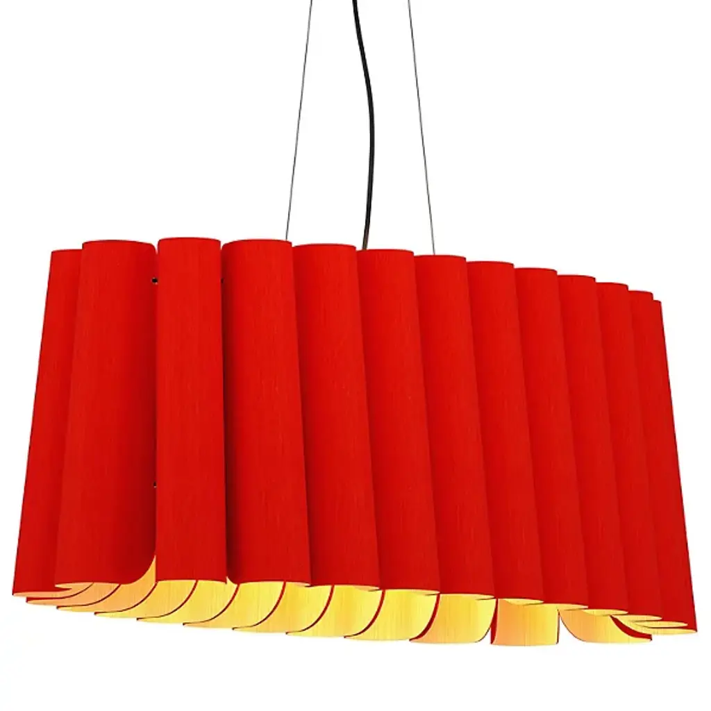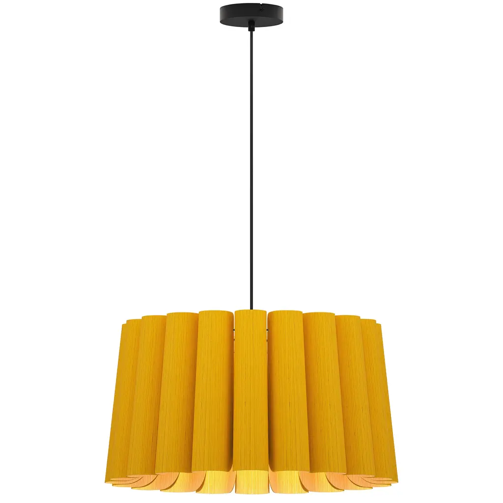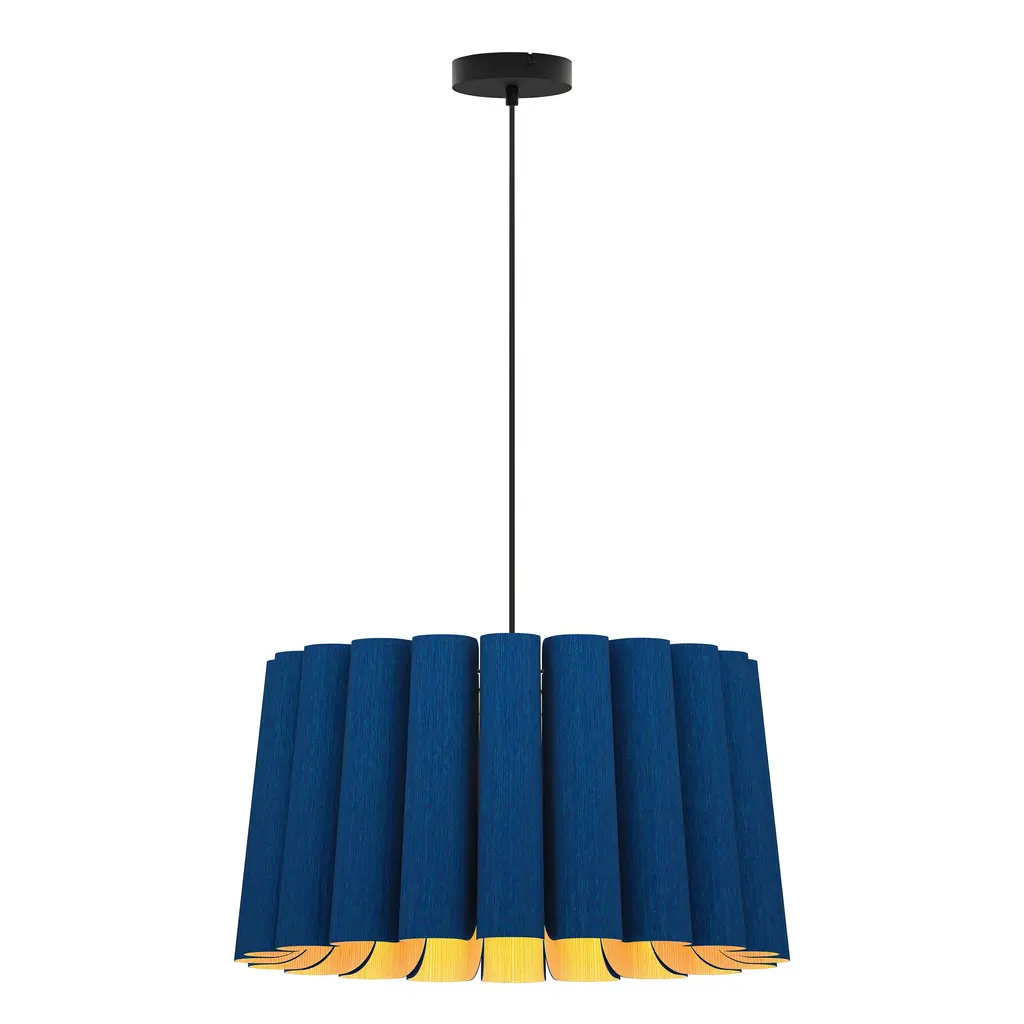 A finely tailored, natural lighting design for modern interiors, the Renata Round Pendant by Bruck Lighting is part of the WEP Light (Wood Ecological Project) Collection. Handcrafted using multiple panels of recycled wood veneer, the panels are arranged in tight curves, creating a subtly flared and pleated-looking shade around the central light source. Over a dining table or kitchen island, this pendant light serves as an organic and refined centerpiece.