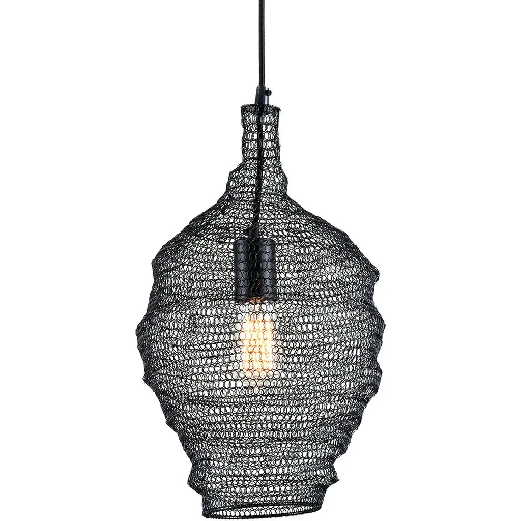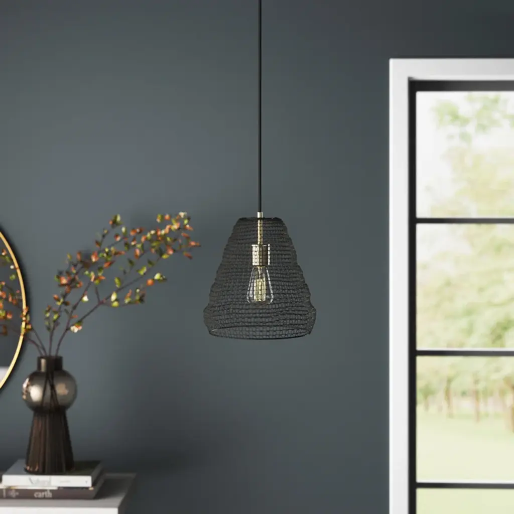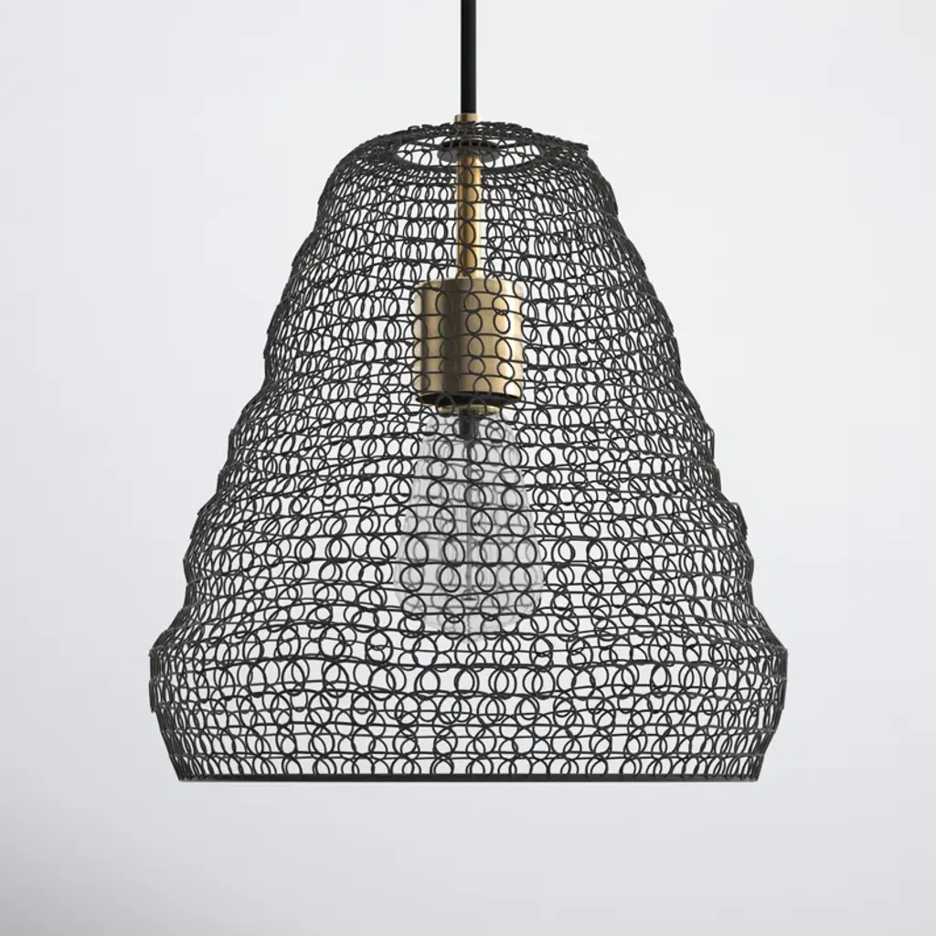 Whether you hang it by itself or cluster it with a few of the same design, this 1-light bulb pendant adds a touch of industrial-inspired style to your space. The large metal wire mesh shade has a distinctive silhouette designed to pull focus. Inside, a vintage 40W incandescent Edison bulb pairs well with the brass-finished accents. This pendant light has a fabric-covered cord and an adjustable length of downrod that can be customized to fit ceilings of all heights.