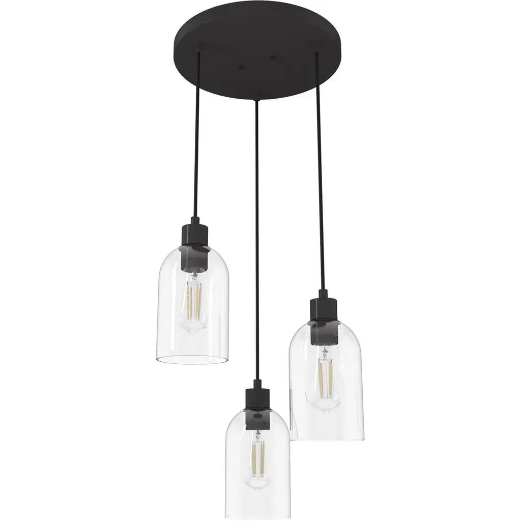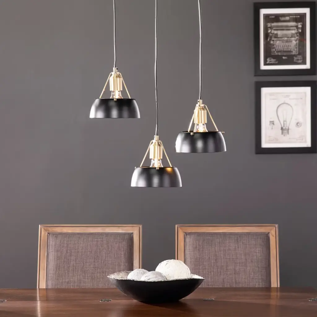 Steal the spotlight with this three-light pendant. Black shades surround warm, glowing lights, while adjustable cords allow various hanging heights for a customizable look. Install this cluster pendant above your dining room table to shed light on family dinners and special occasions, or hang in your entry to make a grand entrance or exit. With this modern pendant lamp in your living space or kitchen, your style embraces the limelight.