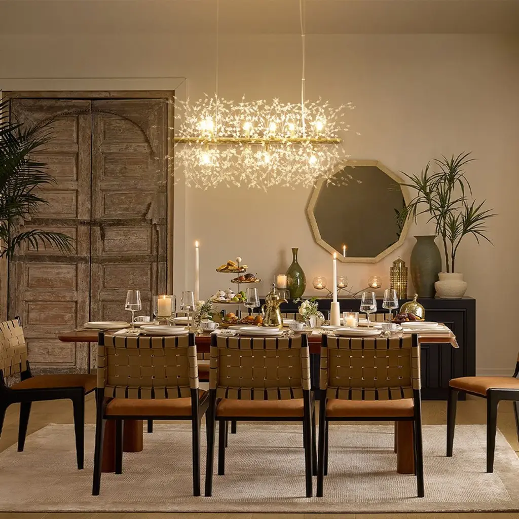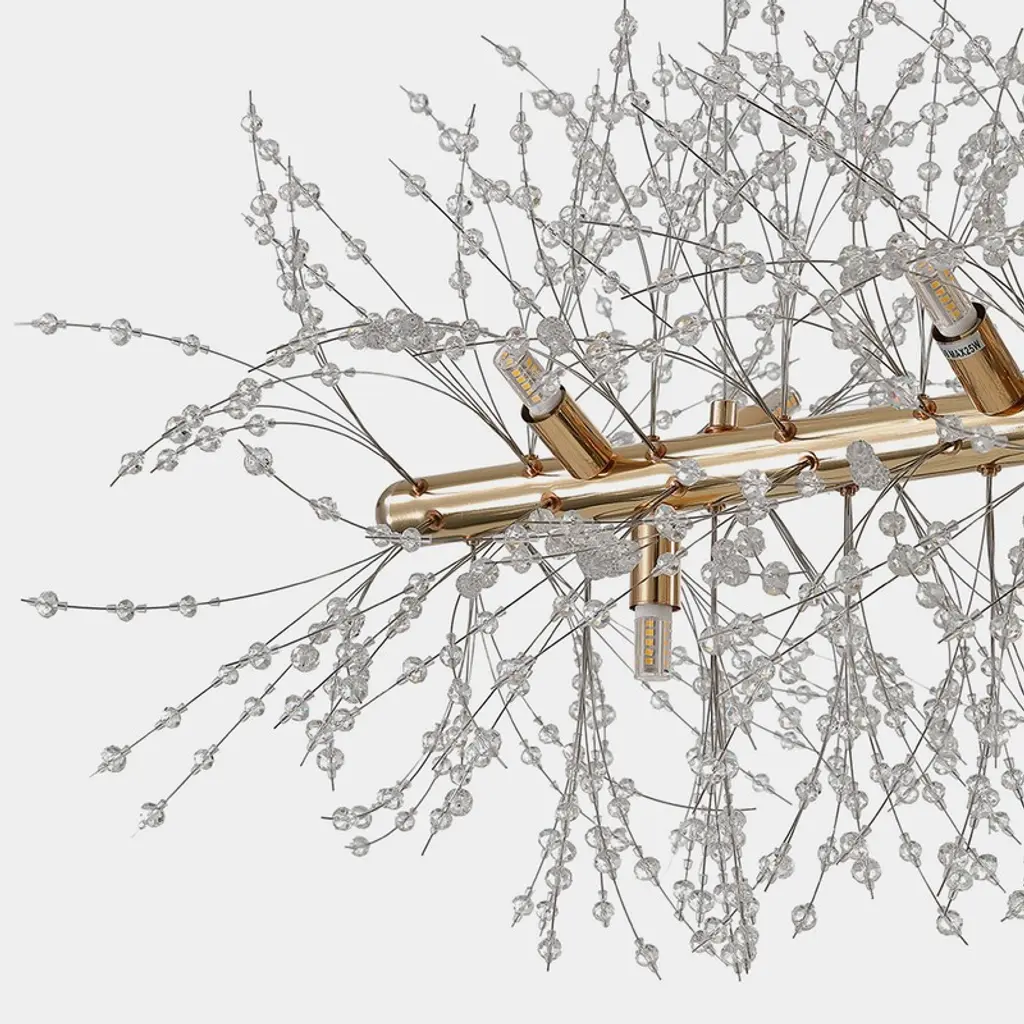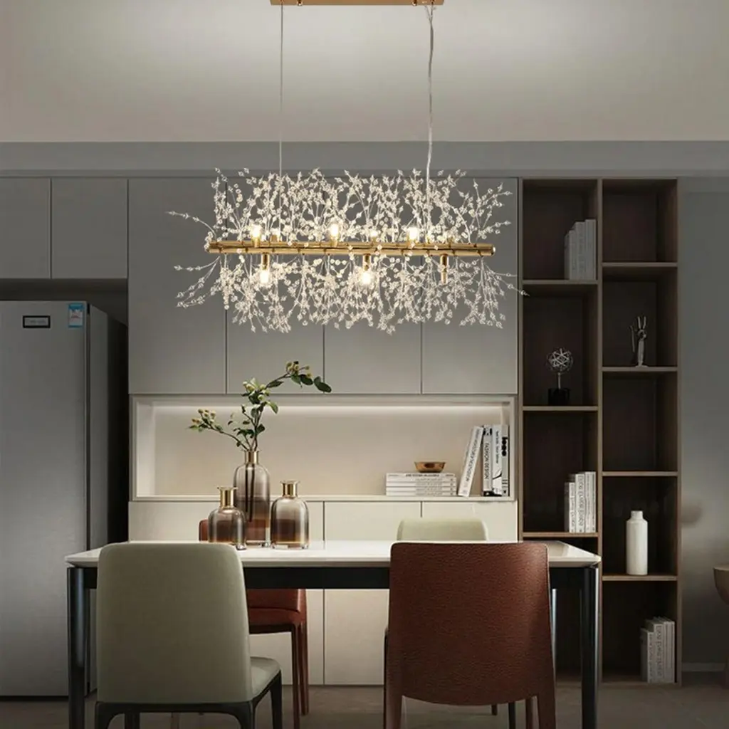 Elevate your kitchen or dining space with this dandelion crystal pendant, featuring a dazzling 9-light sputnik design that mimics a glamorous firework burst. The elongated structure showcases sunburst and starburst elements with a shimmering crystal finish, adding a touch of modern glam to your home. Measuring 15 inches, this eye-catching kitchen island chandelier supports G9 base 60W bulbs (not included) and is fully dimmable for personalized ambiance. All installation hardware is included for a quick and easy setup. Perfect for style-conscious homeowners seeking a bold statement piece that balances function with elegance.