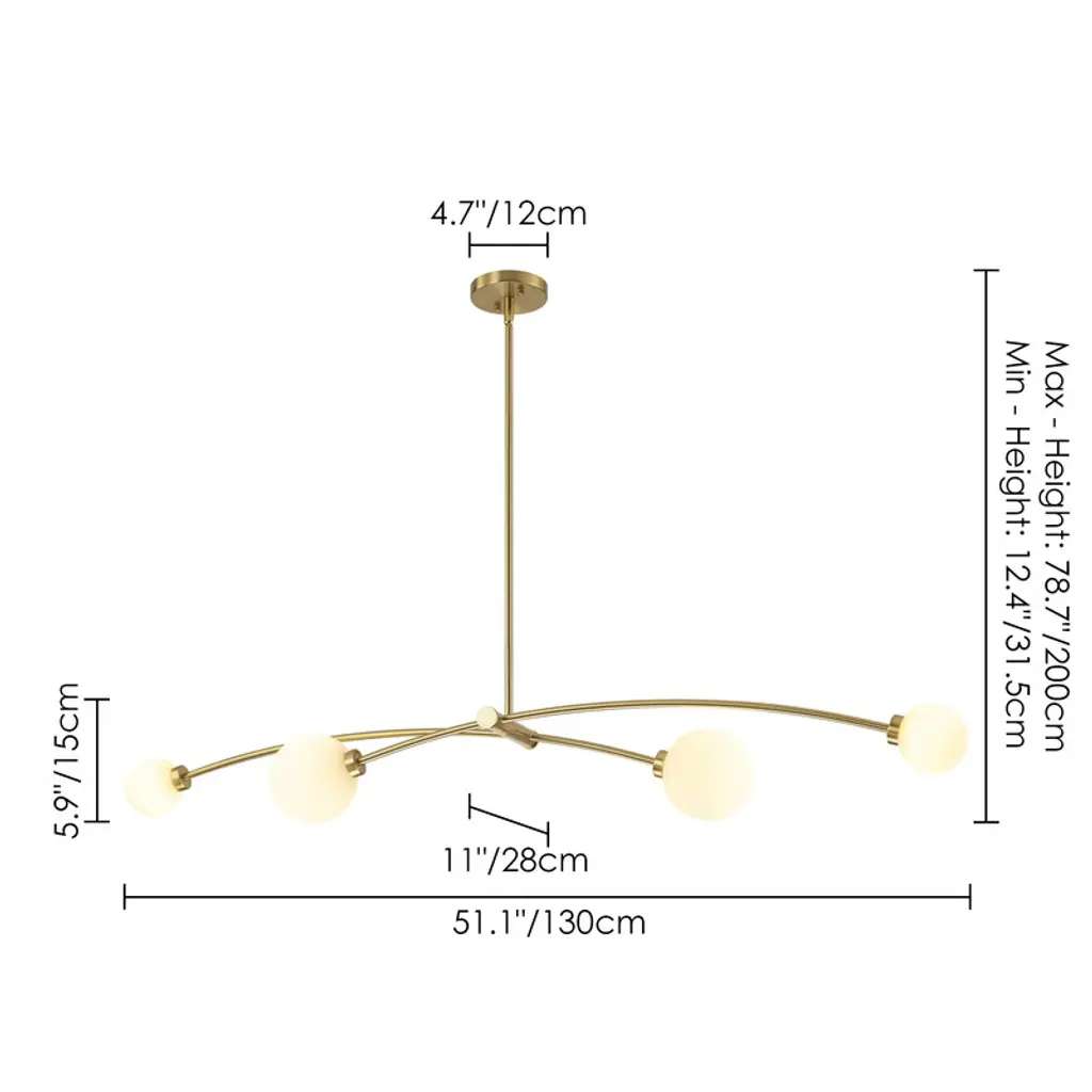 Illuminate your kitchen island with this modern 4-light pendant featuring sculptural branching arms and milky white glass globes. Designed with frosted, opal glass bubbles, it creates a soft, inviting glow. The 51-inch linear frame adds elegant simplicity, while dimmable functionality lets you adjust ambiance effortlessly. Easy to install with all accessories included, this stylish pendant blends functional lighting and artistic design for a sophisticated look. Perfect for design-conscious homeowners seeking sleek, modern charm.