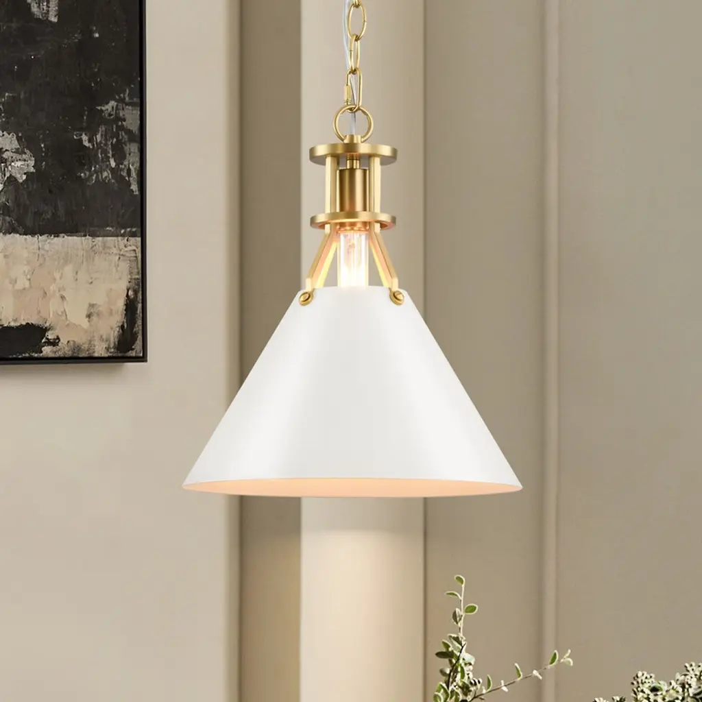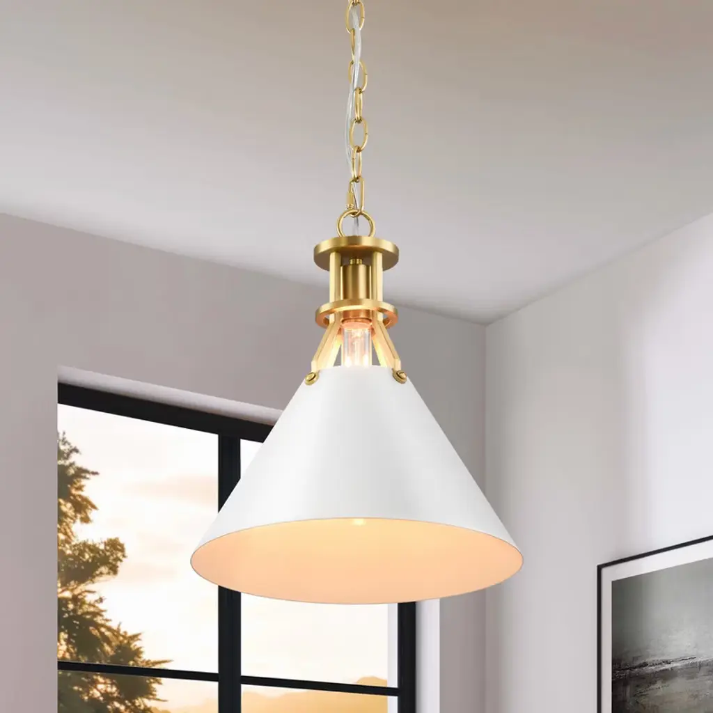 Add a touch of industrial charm with this 12-inch pendant featuring a sleek umbrella-shaped metal shade. Designed to cast focused downward light, it¡¯s perfect for kitchen islands, dining tables, or reading nooks. The sturdy matte finish pairs effortlessly with both rustic and modern interiors. Easily adjust lighting ambiance with its dimmable function to match different settings. Compatible with 40W E26 base bulbs (not included) and includes all mounting accessories for quick installation. Whether used as a single statement or grouped for impact, this pendant delivers style and practicality in equal measure.