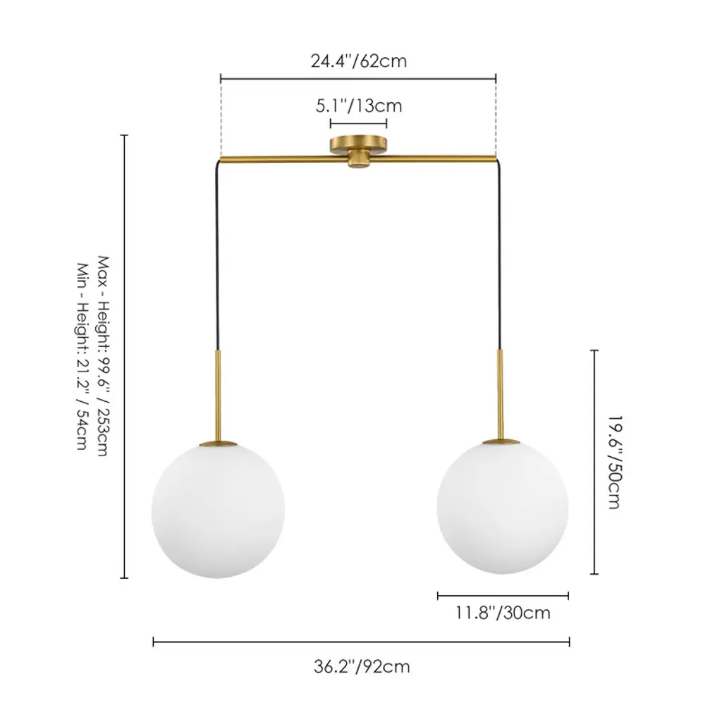 Illuminate your kitchen island or dining space with this sleek 2-light linear pendant, designed to impress with modern style and soft, functional lighting. Featuring two frosted opal white glass globes with a bubble-inspired shape, this milky glass fixture diffuses light beautifully while complementing any contemporary d¨¦cor. The 36¡å linear frame offers a clean, minimalist silhouette perfect for modern interiors. Dimmable functionality lets you adjust brightness to suit mood or task, while easy installation and E26 compatibility (40W bulbs not included) make it a practical choice. Ideal for design-conscious homeowners who seek the perfect blend of elegance, warmth, and everyday utility.