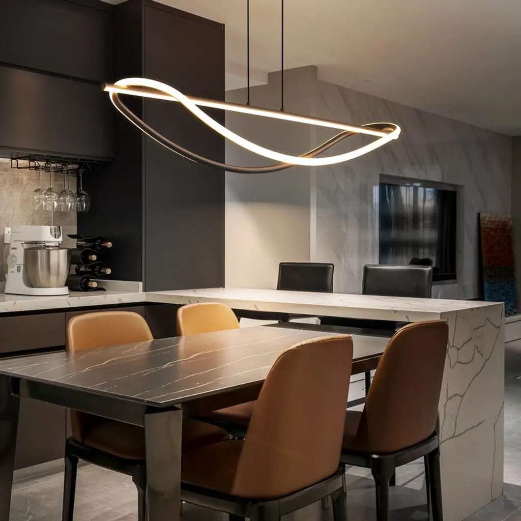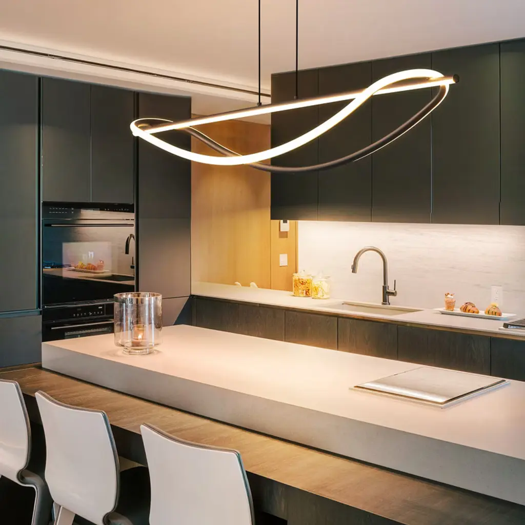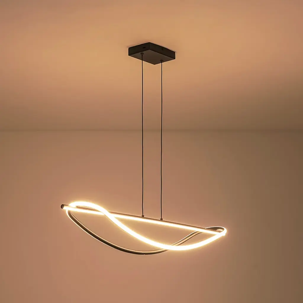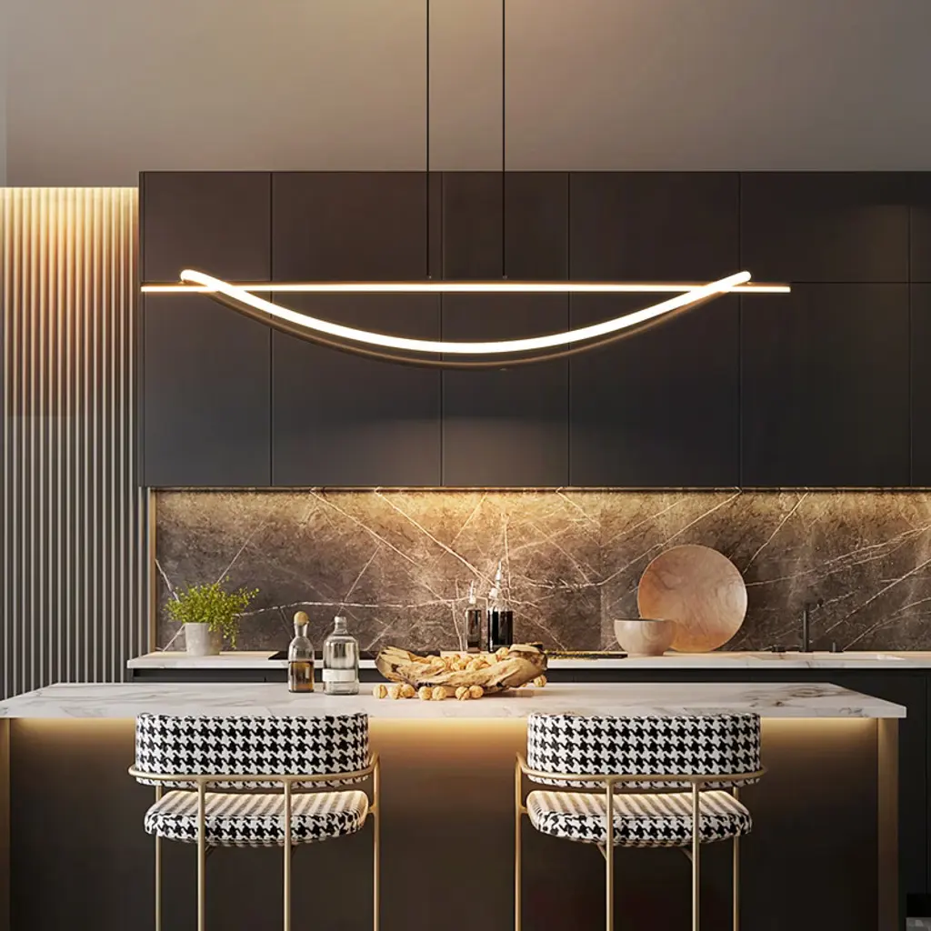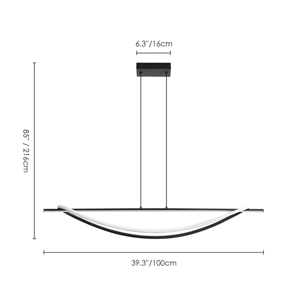 Upgrade your kitchen with this modern arc-shaped Linear LED Pendant. Crafted from sleek aluminum, this 39" wide fixture adds a sculptural statement above your island or dining table. The dimmable design allows you to customize brightness for any moment, from prep work to intimate dinners. Featuring warm 3000K lighting with 80 CRI, it delivers true-to-life color and ambiance. Environmentally friendly and built to last, this pendant includes all mounting hardware for a quick, hassle-free installation. Whether you're styling a minimalist loft or a modern farmhouse, this pendant blends clean lines with soft curves for an effortlessly elevated space.