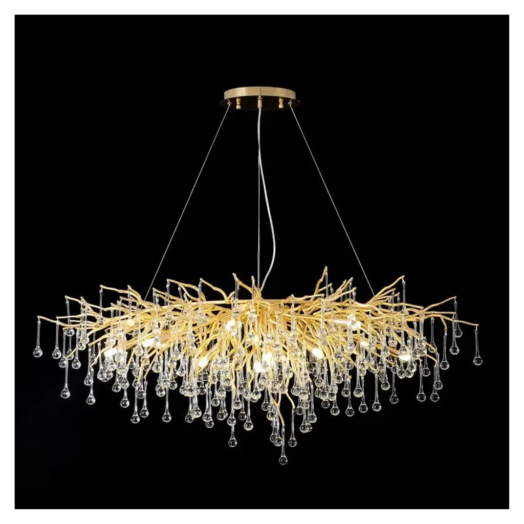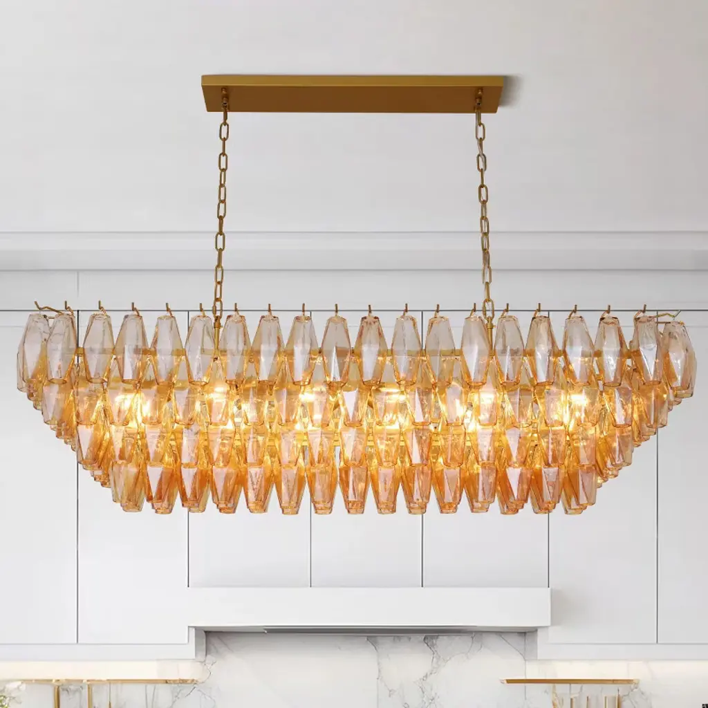 Rennnsan Glayven 35"w 12-light Dandelion Crystal Modern Glam Dimmable Kitchen Island Pendant In Gold