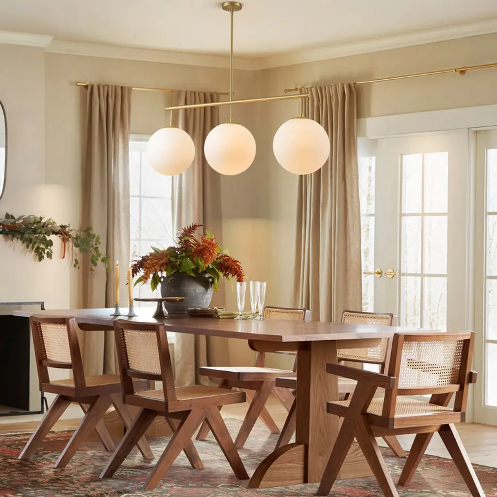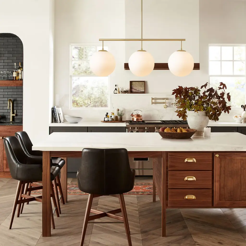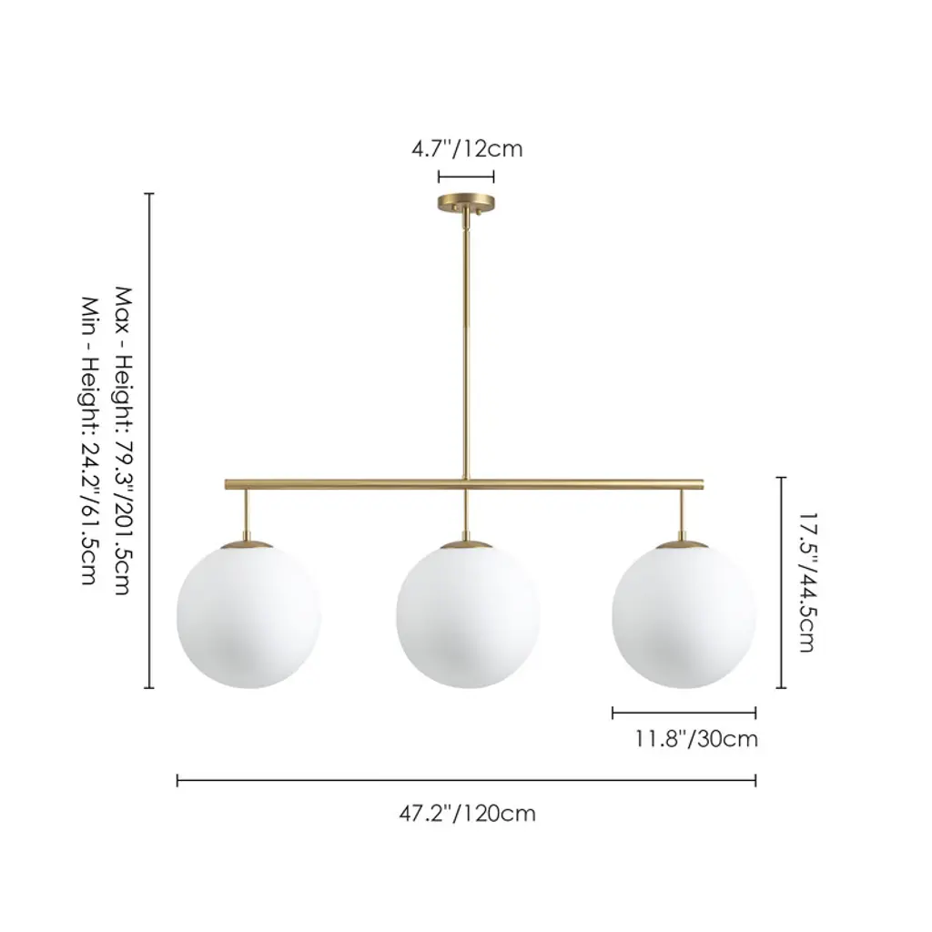 Enhance your kitchen with this modern 3-light linear pendant featuring milky white glass globes suspended from a streamlined 47¡å bar. Crafted from frosted opal glass, each bubble-style globe diffuses light softly to eliminate harsh shadows and create an inviting ambiance over islands or dining tables. The dimmable function lets you tailor brightness for cooking, entertaining, or casual meals, while energy-efficient design saves on electricity. Compatible with E26 40W bulbs (not included), the fixture mounts quickly with all hardware included and offers easy access for bulb changes and cleaning. Perfect for design-savvy homeowners seeking a blend of style, function, and warm, decorative glow.