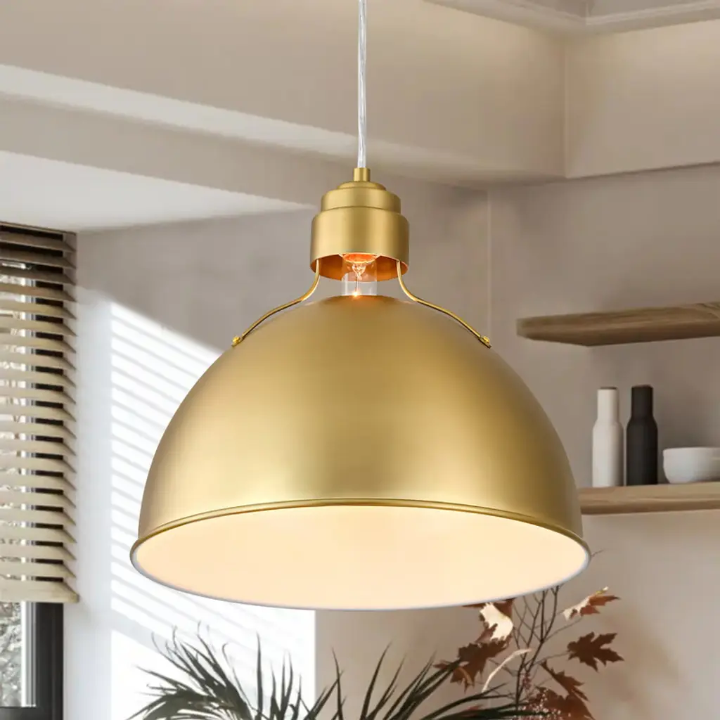 Elevate your space with this 13-inch modern pendant, featuring a smooth half-sphere shade that delivers clean, contemporary charm. The minimalist silhouette suits kitchens, hallways, or breakfast nooks, while the soft matte finish adds a refined touch. Enjoy flexible lighting with its dimmable function, perfect for setting the right mood throughout the day. Designed for easy installation, this pendant includes all necessary hardware for a hassle-free setup. Its compact size offers focused illumination without overwhelming your space. Compatible with a 60W E26 bulb (not included), it¡¯s an ideal solution for those seeking both functionality and modern design in their lighting.