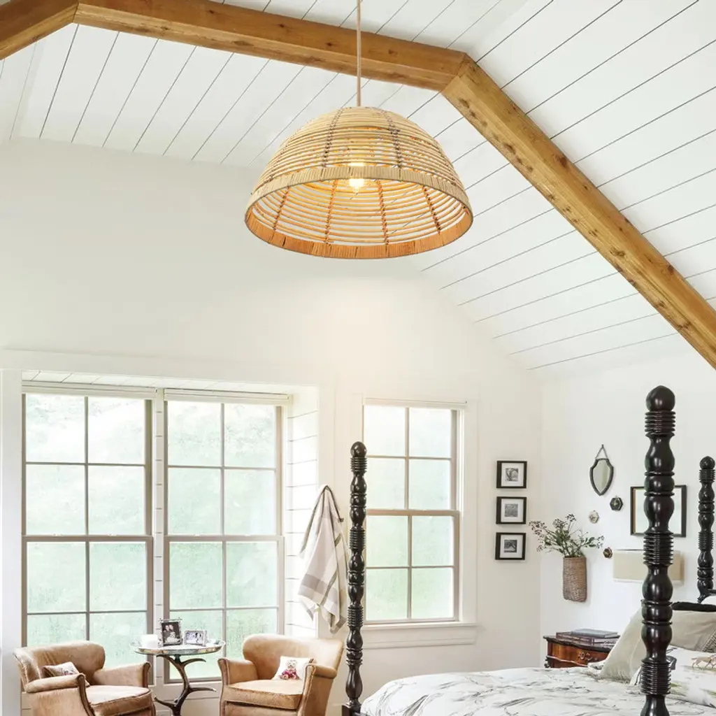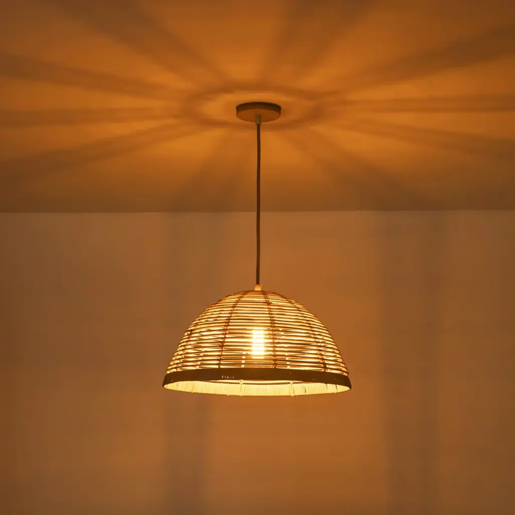 Bring warm, organic charm to your space with this 19-inch Oversize Boho pendant. Wrapped in natural rope and shaped like a shallow dome, it blends coastal textures with casual elegance. The handwoven look adds depth and a soft, earthy vibe, perfect for brightening kitchens, reading nooks, or relaxed dining areas. Equipped with a dimmable feature, it lets you adjust the ambiance to match your mood. Designed for easy installation with all hardware included, it supports a 60W E26 base bulb (not included). This statement piece effortlessly balances artisanal detail with modern functionality, making it a standout in any bohemian-inspired home.