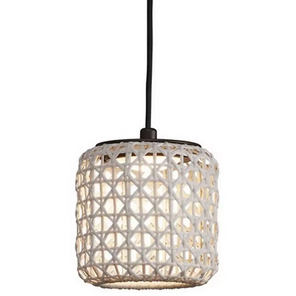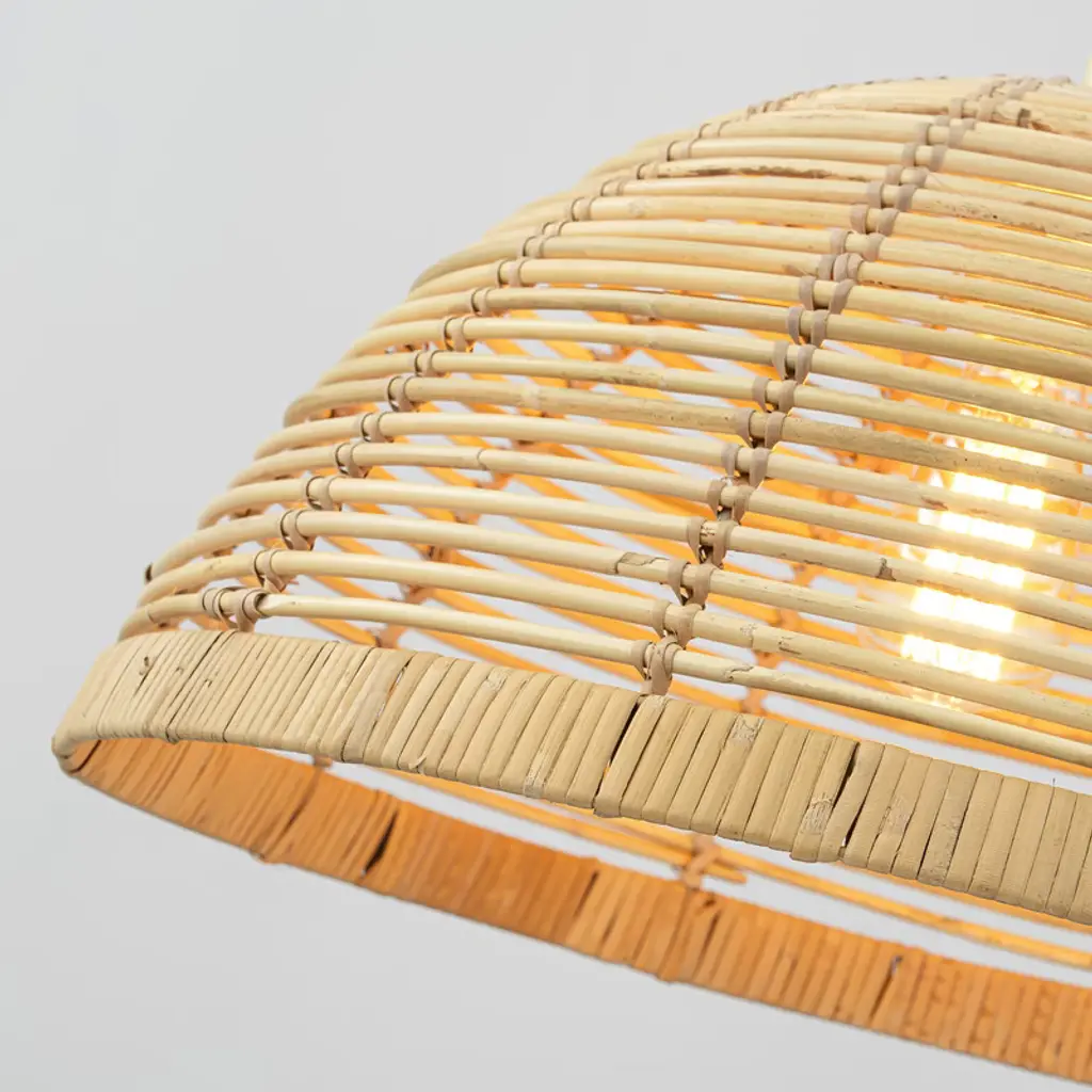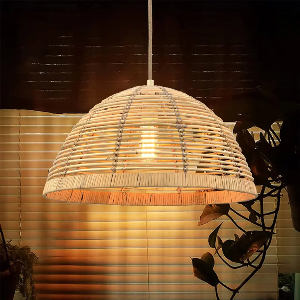 Rennnsan Orevyn 19"w 1-light Dome Woven Ratten Boho Dimmable Pendant In Beige