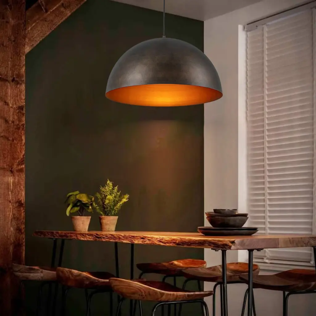 Elevate your space with this oversize 19-inch vintage pendant, featuring a bold dome silhouette and distressed metal finish for authentic industrial charm. The weathered texture adds character, making it an eye-catching piece above kitchen islands, dining tables, or entryways. Designed for both style and function, this pendant is dimmable to suit any mood and includes all necessary hardware for easy installation. Its spacious shade offers wide light distribution while complementing rustic or farmhouse d¨¦cor. Compatible with a 60W E26 bulb (not included), it¡¯s the perfect blend of rugged design and practical lighting. Make a vintage statement that transforms any room.