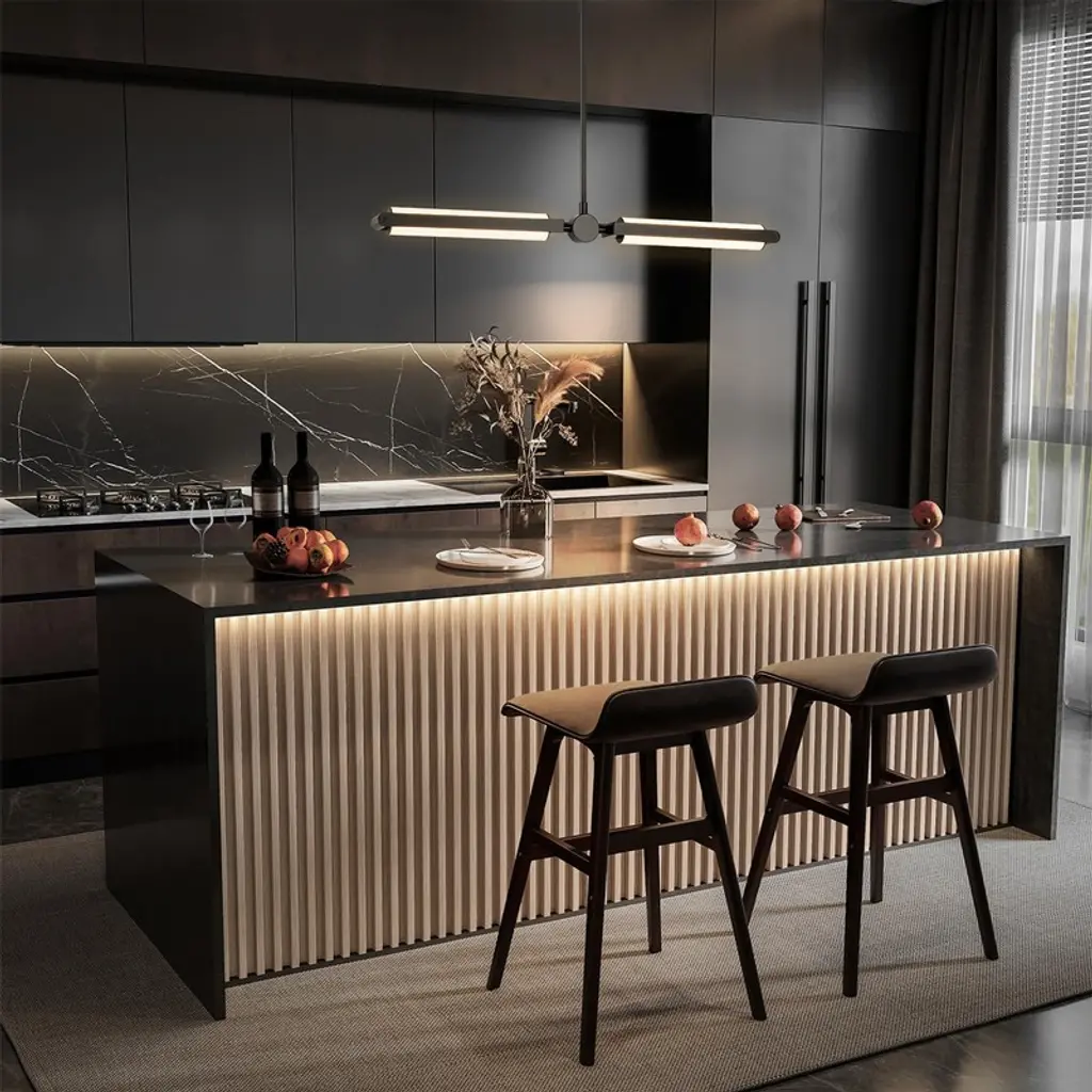 Rennnsan Wynveth 31"w Linear Modern Led Dimmable Kitchen Island Pendant In Black