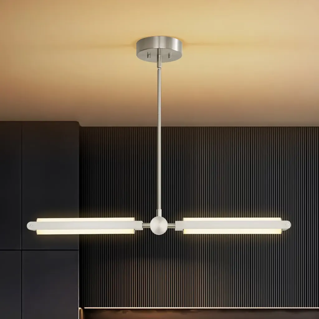 Rennnsan Wynveth 31"w Linear Modern Led Dimmable Kitchen Island Pendant In Silver