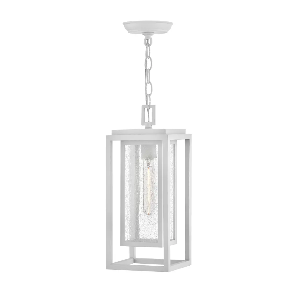 A timeless and exceptionally durable design, the Republic Pendant Light from Hinkley is built to withstand the elements with classic style. This versatile lantern features a striking double frame, crafted from a composite material treated with an anti-fading agent. The clear, seedy glass panels add a touch of vintage, coastal charm and create a beautifully diffused glow. A fusion of timeless design and resilient construction, it’s a sophisticated and lasting lighting choice for any covered porch or entryway. Highlights: