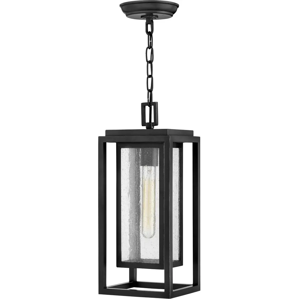 A timeless and exceptionally durable design, the Republic Pendant Light from Hinkley is built to withstand the elements with classic style. This versatile lantern features a striking double frame, crafted from a composite material treated with an anti-fading agent. The clear, seedy glass panels add a touch of vintage, coastal charm and create a beautifully diffused glow. A fusion of timeless design and resilient construction, it’s a sophisticated and lasting lighting choice for any covered porch or entryway. Highlights:
