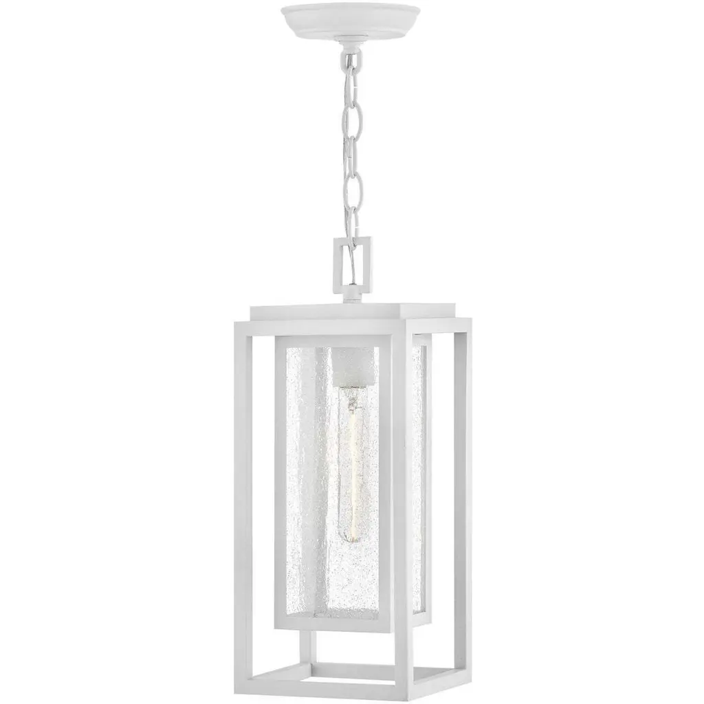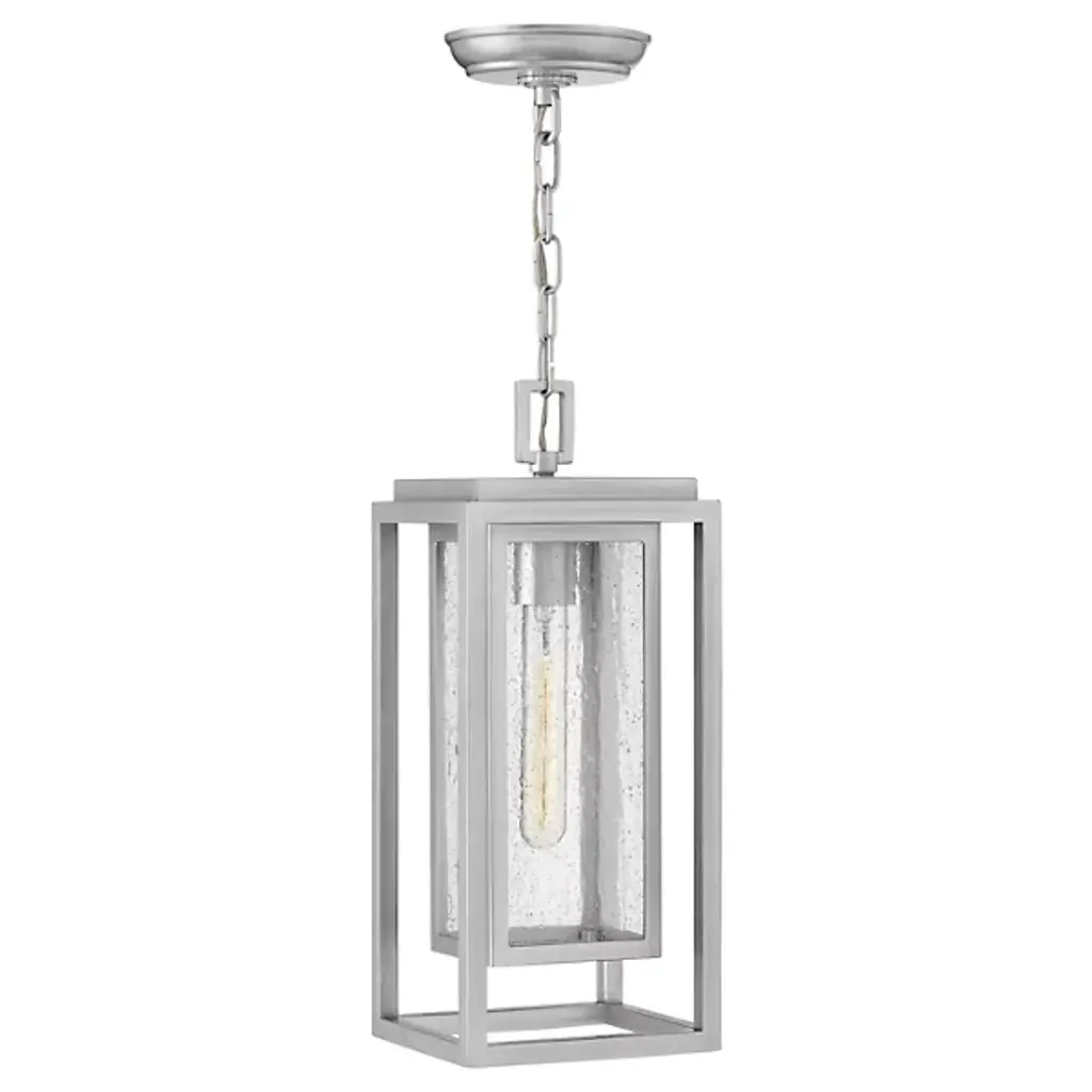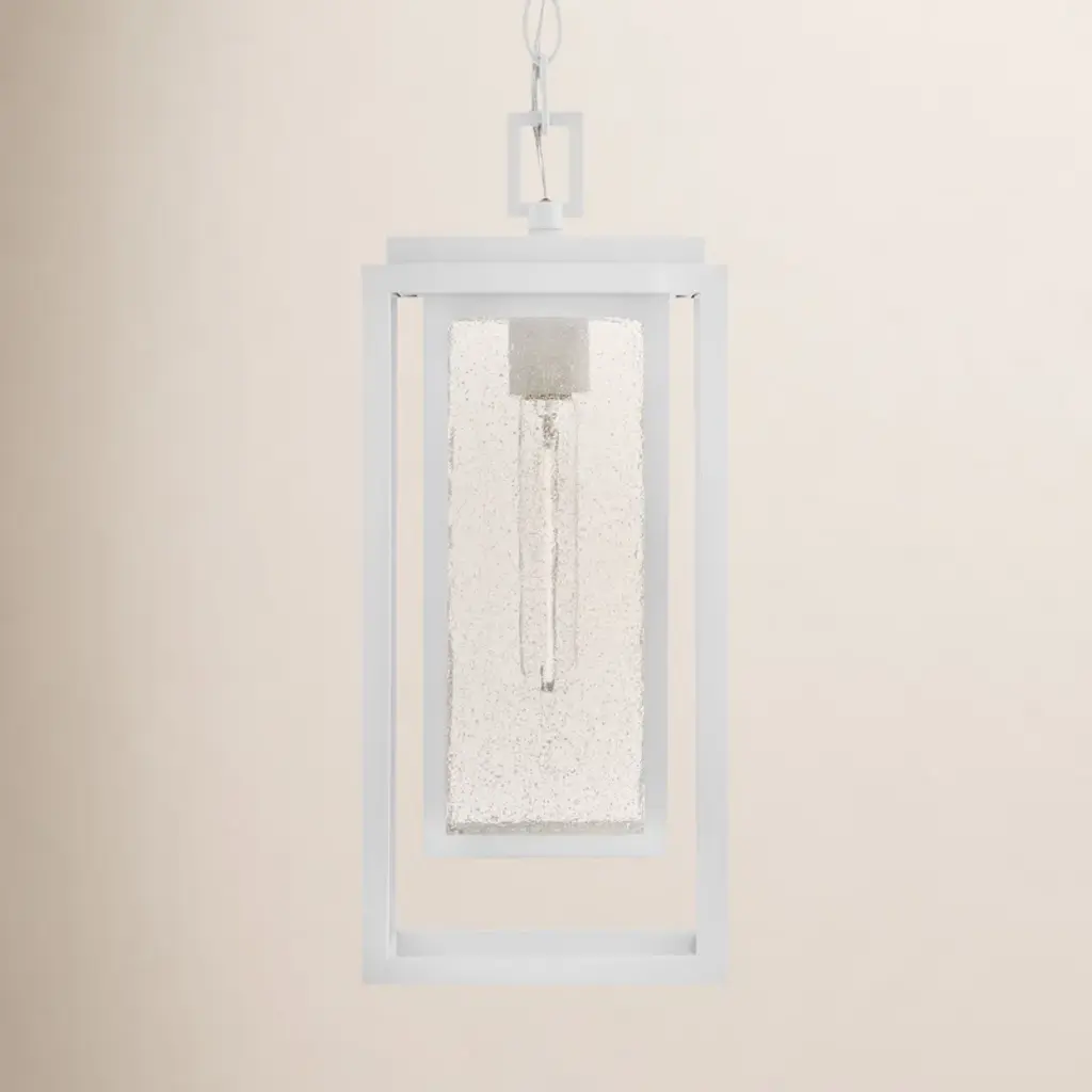 A timeless and exceptionally durable design, the Republic Pendant Light from Hinkley is built to withstand the elements with classic style. This versatile lantern features a striking double frame, crafted from a composite material treated with an anti-fading agent. The clear, seedy glass panels add a touch of vintage, coastal charm and create a beautifully diffused glow. A fusion of timeless design and resilient construction, it’s a sophisticated and lasting lighting choice for any covered porch or entryway. Highlights: