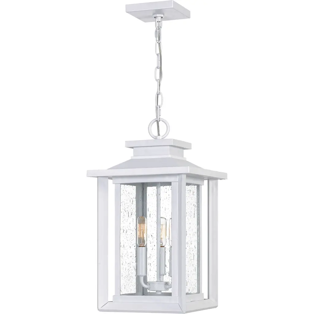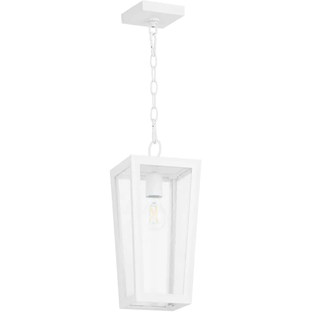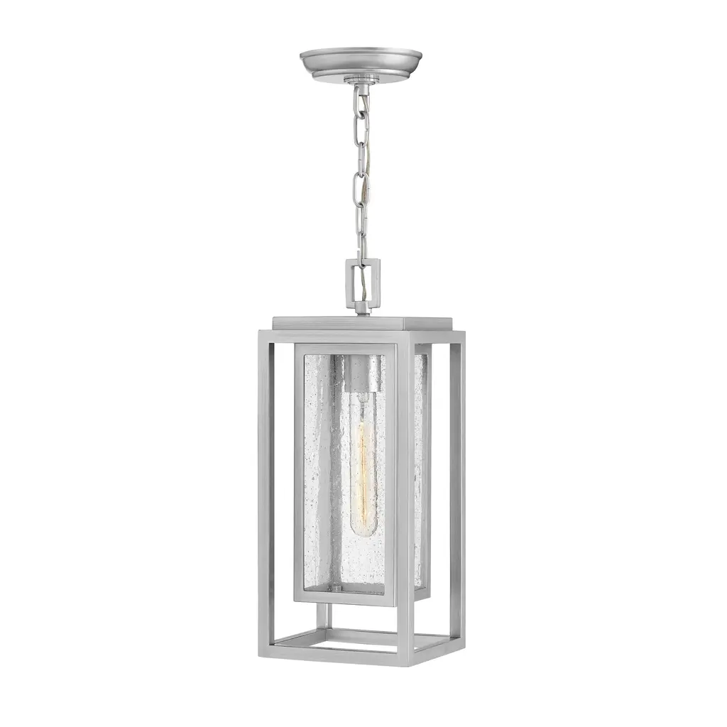 A timeless and exceptionally durable design, the Republic Pendant Light from Hinkley is built to withstand the elements with classic style. This versatile lantern features a striking double frame, crafted from a composite material treated with an anti-fading agent. The clear, seedy glass panels add a touch of vintage, coastal charm and create a beautifully diffused glow. A fusion of timeless design and resilient construction, it’s a sophisticated and lasting lighting choice for any covered porch or entryway. Highlights: