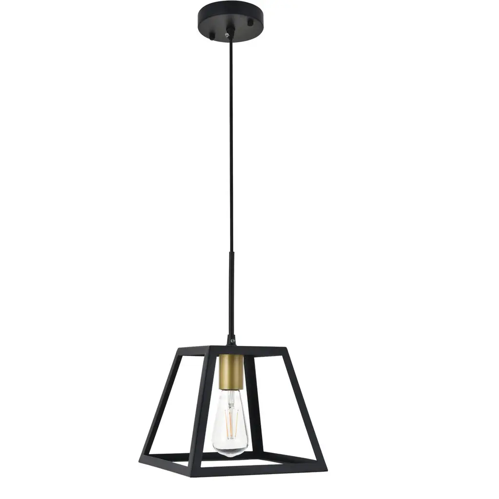 Never underestimate the determined Resolute collection of pendant lamp in a brass and black finish. Its sturdy yet open trapezoid frame gives it a powerful presence that can do well in any modern and contemporary home. This pendant will shine brightly anywhere in your home, whether it's in your living room or dining room.