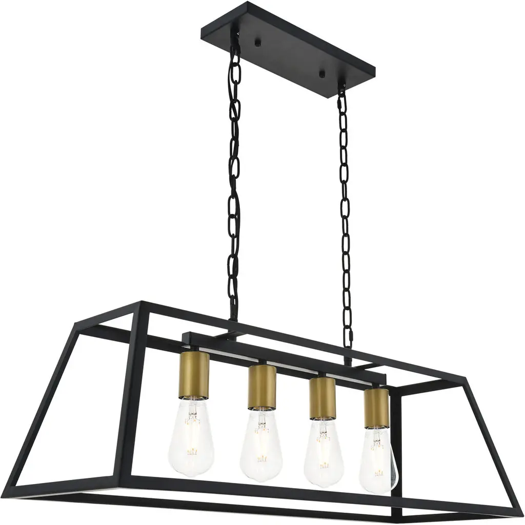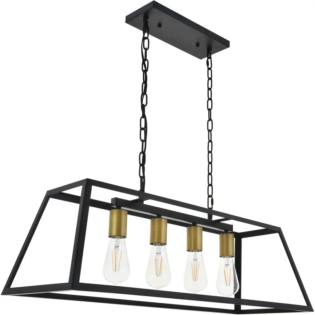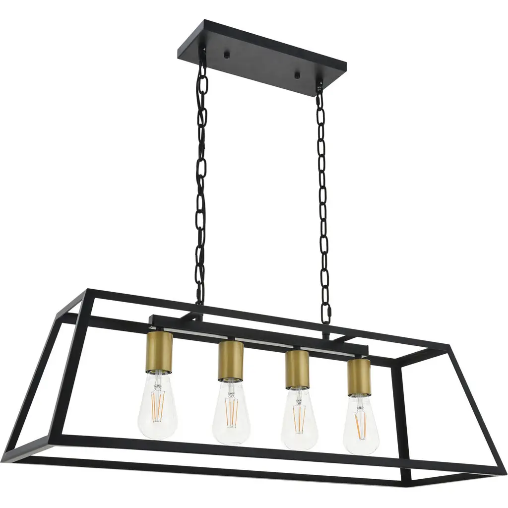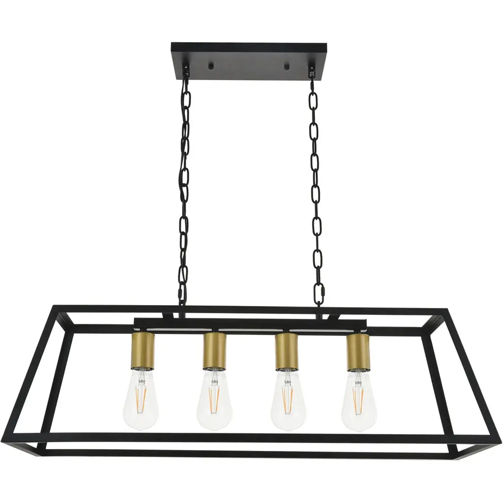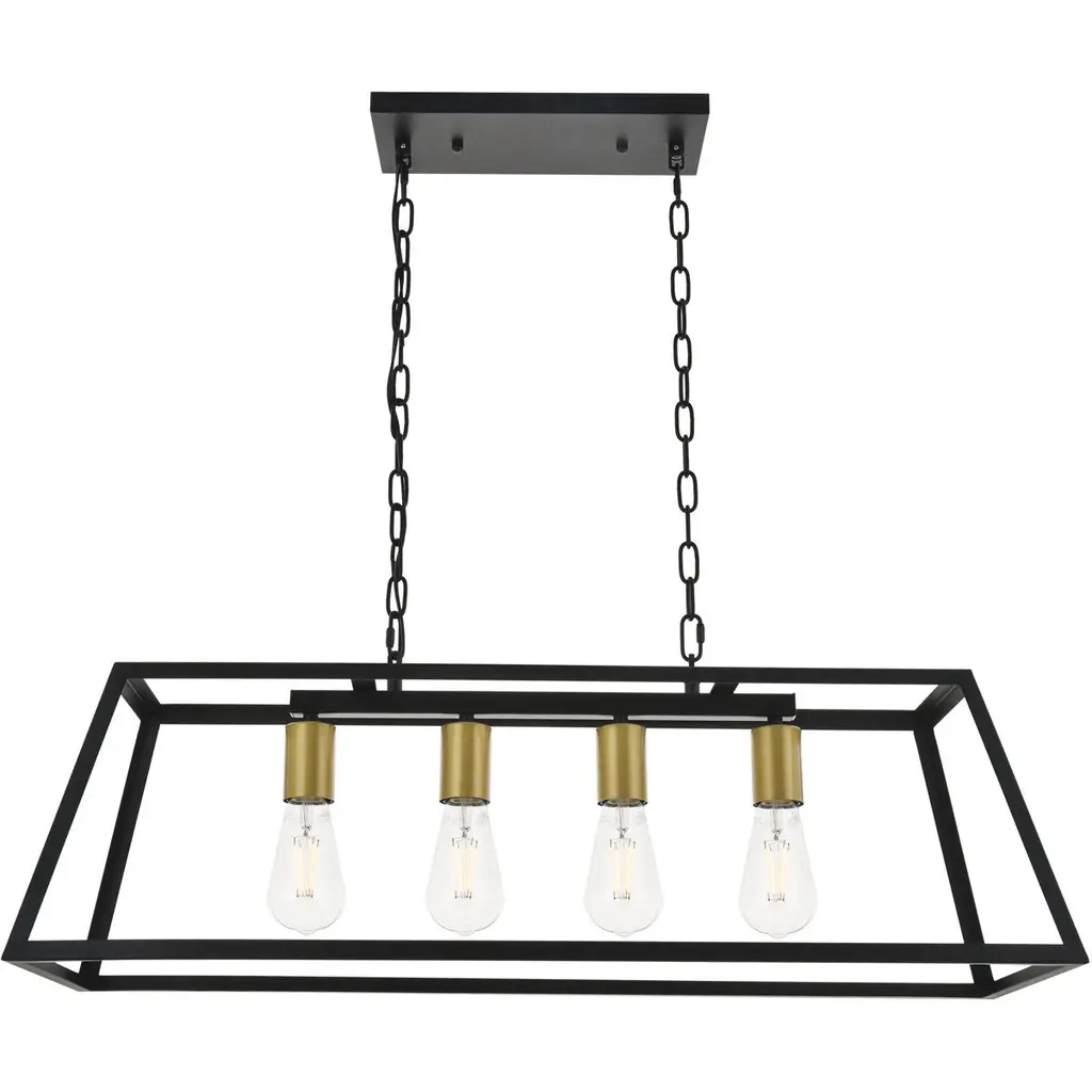 Resolute 4 Light 32 Inch Brass And Black Pendant Ceiling Light
