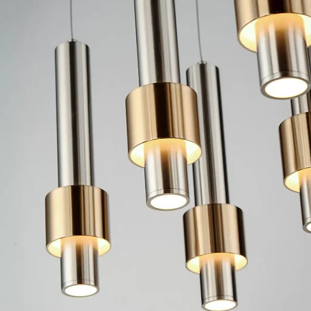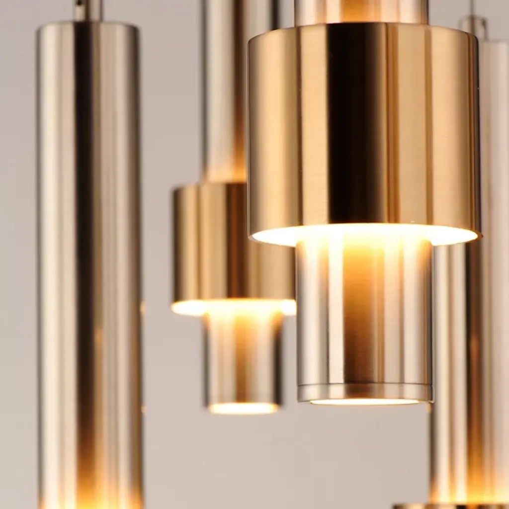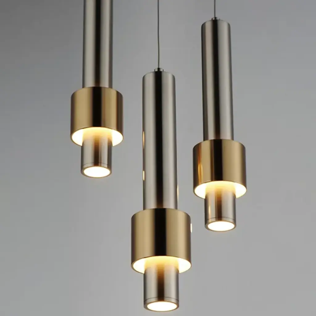 The Reveal LED Multi-Light Pendant from ET2 Lighting reveals the sophisticated character of your living spaces with geometric forms brimming with beautiful light. The piece brings instant depth and dimension in a series of cylindrical forms that float gracefully overhead. The geometric devices feel precise and permanent in their metal construction. An ambient LED light radiating from the outer band glazes elegantly over the inner tube. The piece also produces a soft LED down glow through the circular opening at the base.