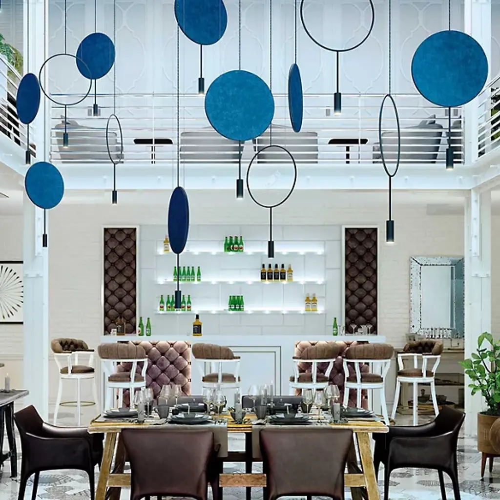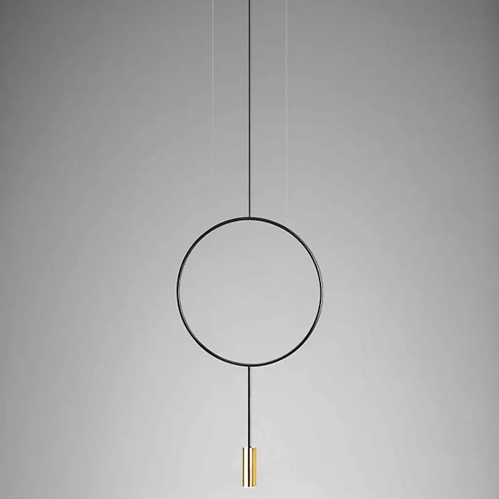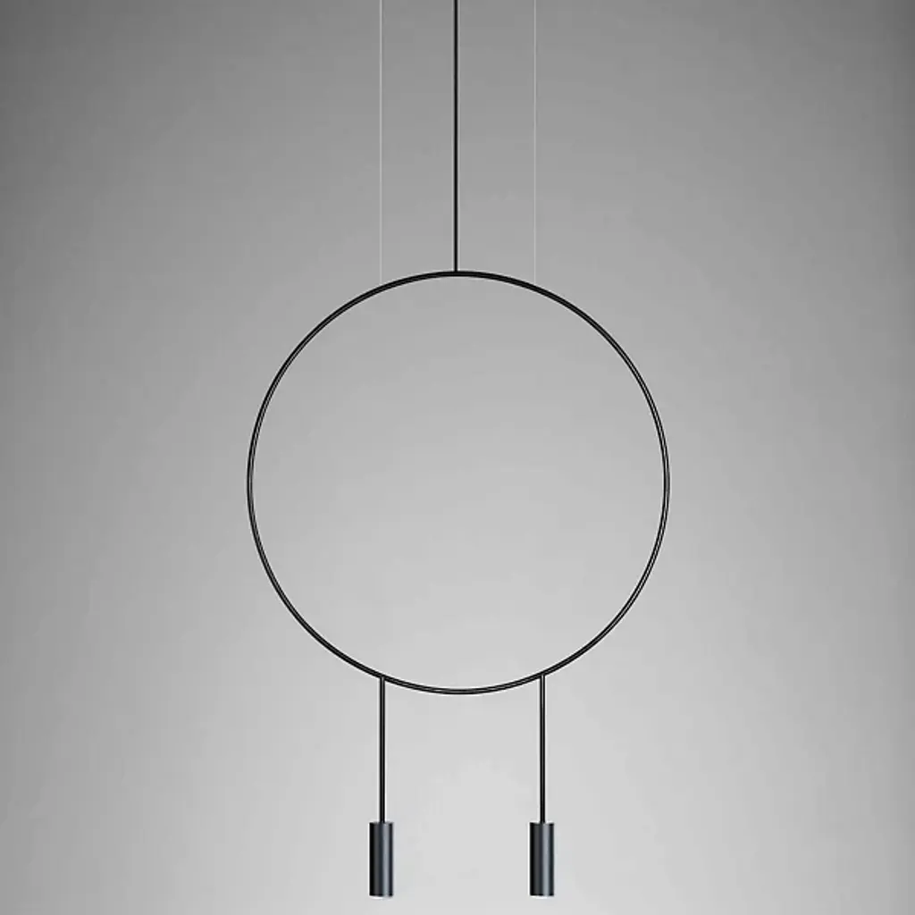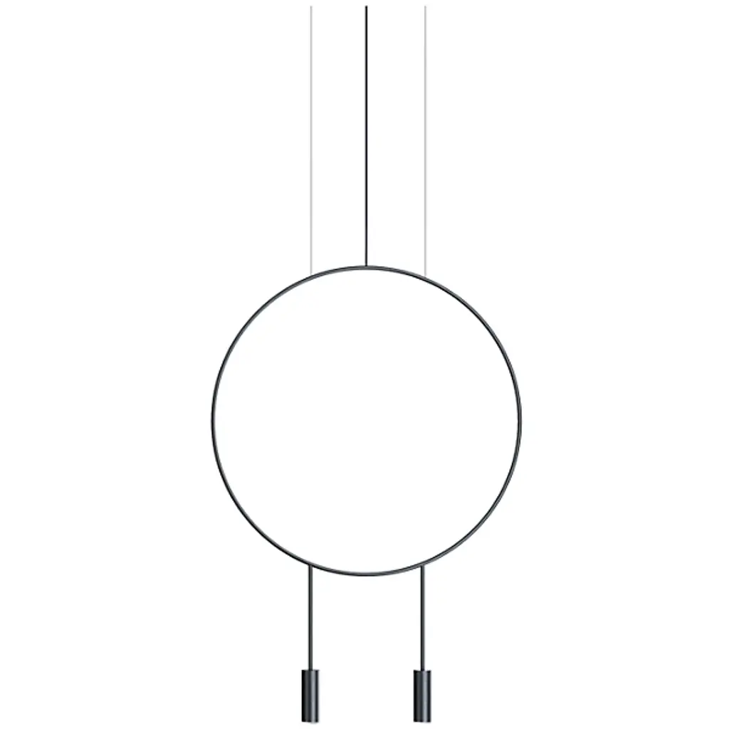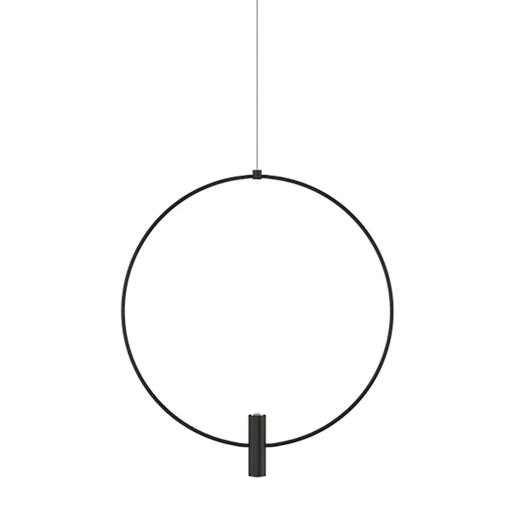 The Revolta Pendant from Estiluz is a delightful contemporary lamp with an impressive style ready to upgrade your notion of interior design. The frame of the lamp features a circular structure, which suspends the Aluminum head that holds the integrated 2700K color temperature LED system. This bulb is covered by a Methacrylate Optic lens that diffuses light into a warm hue while still offering direct lighting. The base is black for a sleek, modern look. Offered in two different sizes; Small with one head or Large with two heads. This pendant looks as good alone as it does in multiples.