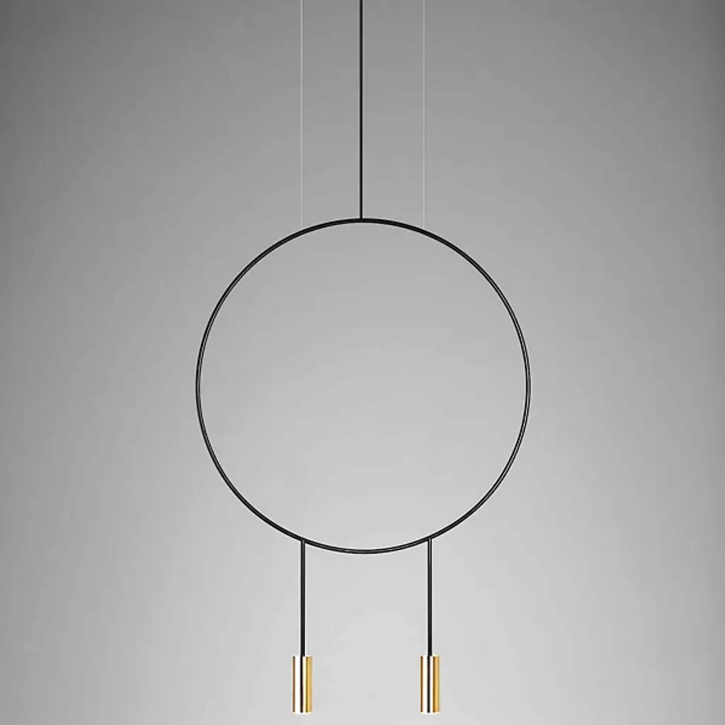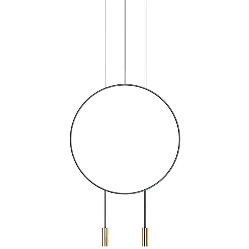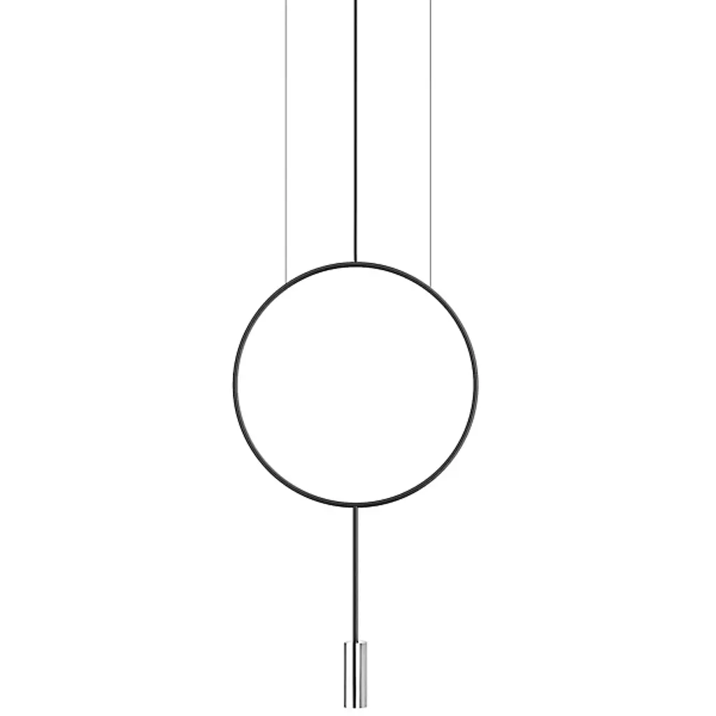 The Revolta Pendant from Estiluz is a delightful contemporary lamp with an impressive style ready to upgrade your notion of interior design. The frame of the lamp features a circular structure, which suspends the Aluminum head that holds the integrated 2700K color temperature LED system. This bulb is covered by a Methacrylate Optic lens that diffuses light into a warm hue while still offering direct lighting. The base is black for a sleek, modern look. Offered in two different sizes; Small with one head or Large with two heads. This pendant looks as good alone as it does in multiples.