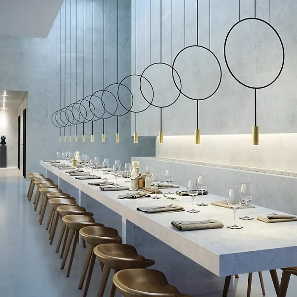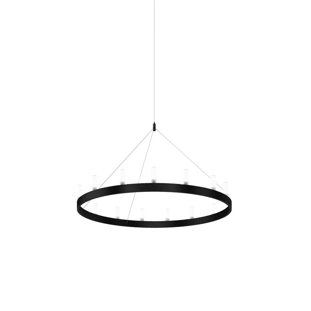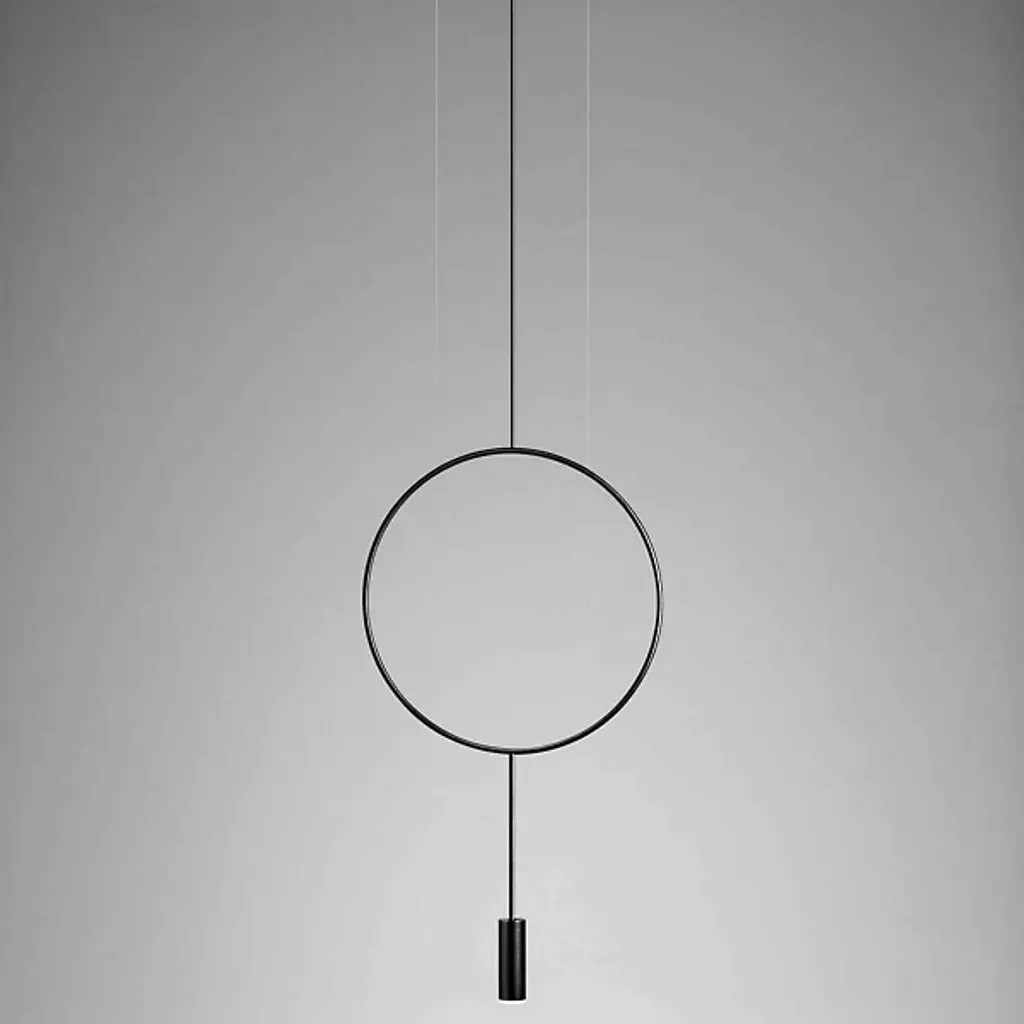 The Revolta Pendant from Estiluz is a delightful contemporary lamp with an impressive style ready to upgrade your notion of interior design. The frame of the lamp features a circular structure, which suspends the Aluminum head that holds the integrated 2700K color temperature LED system. This bulb is covered by a Methacrylate Optic lens that diffuses light into a warm hue while still offering direct lighting. The base is black for a sleek, modern look. Offered in two different sizes; Small with one head or Large with two heads. This pendant looks as good alone as it does in multiples.