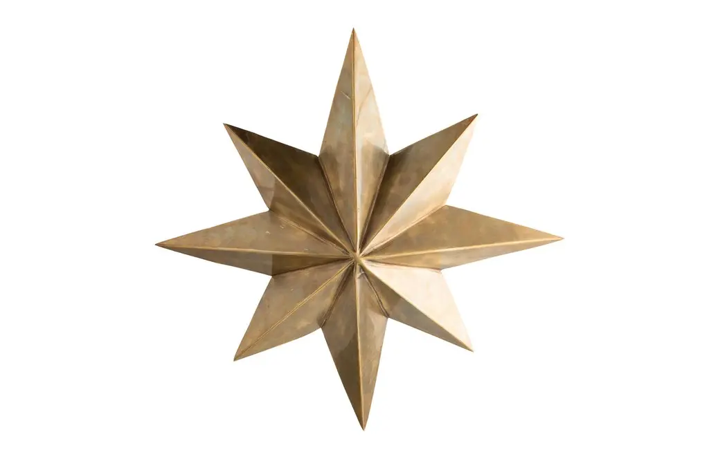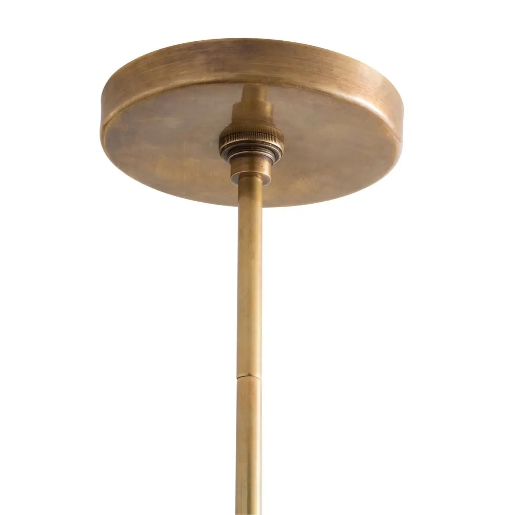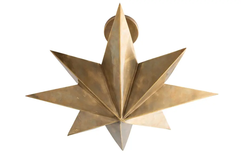 This eight-point star pendant provides sculptural interest as well as a unique option for those rooms with low ceilings. Formed of solid brass with a warm antique finish its four lights reflect off the round canopy for a luminous glow.